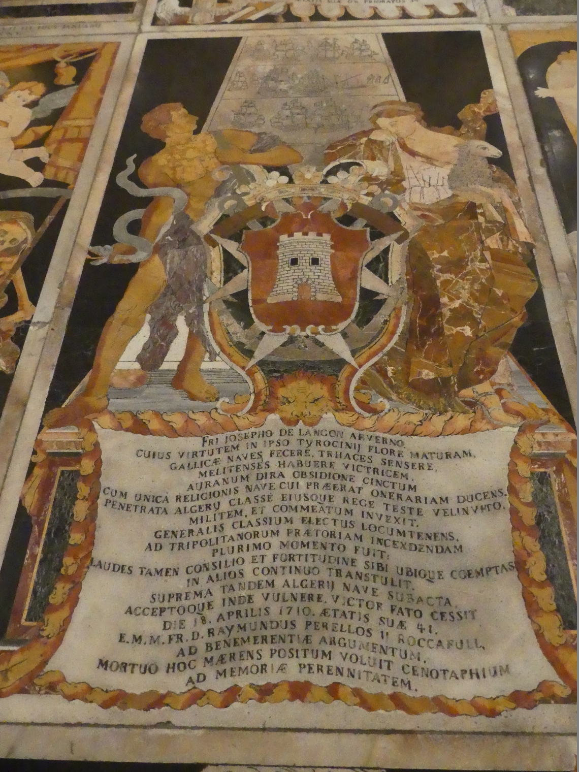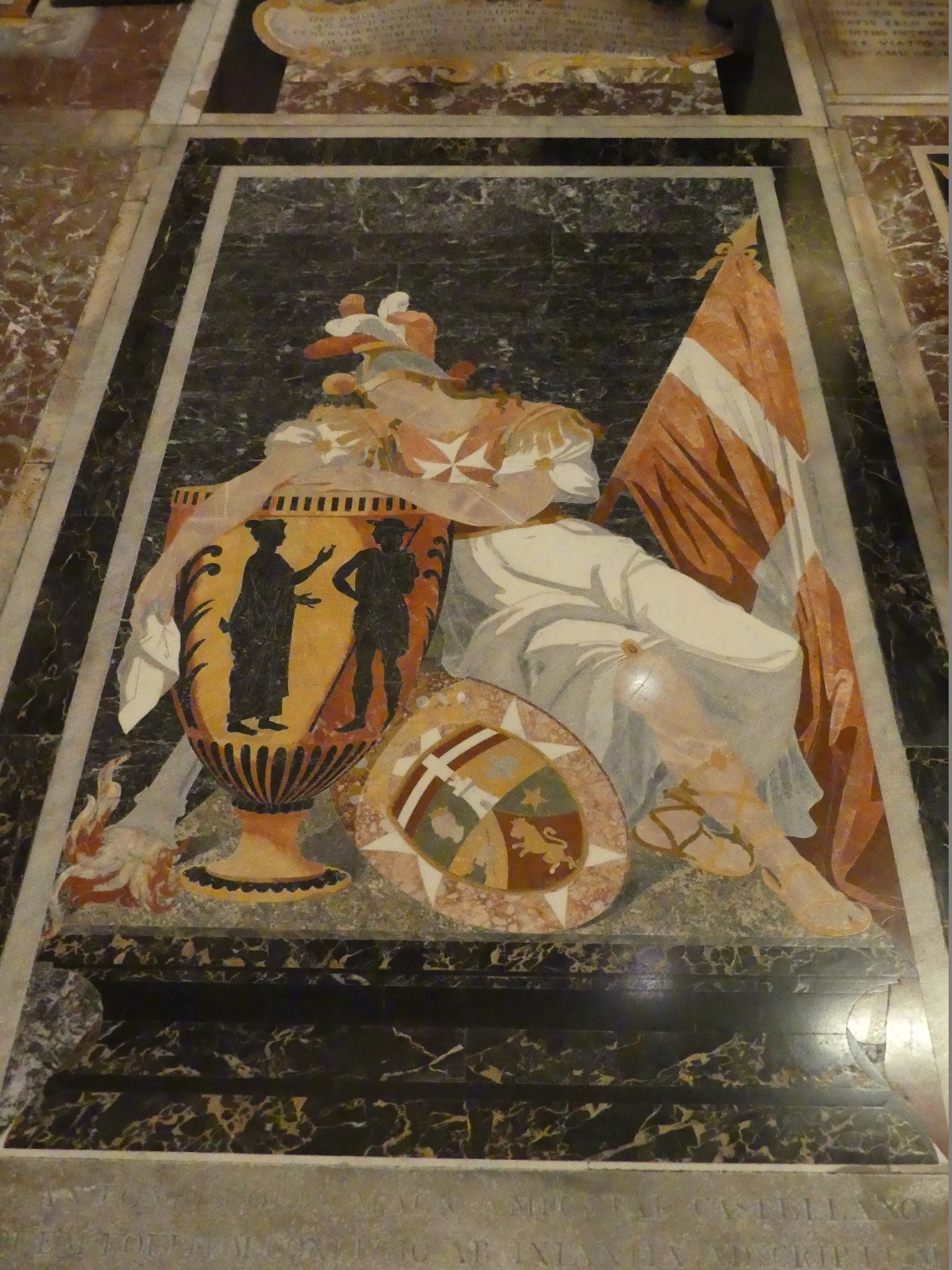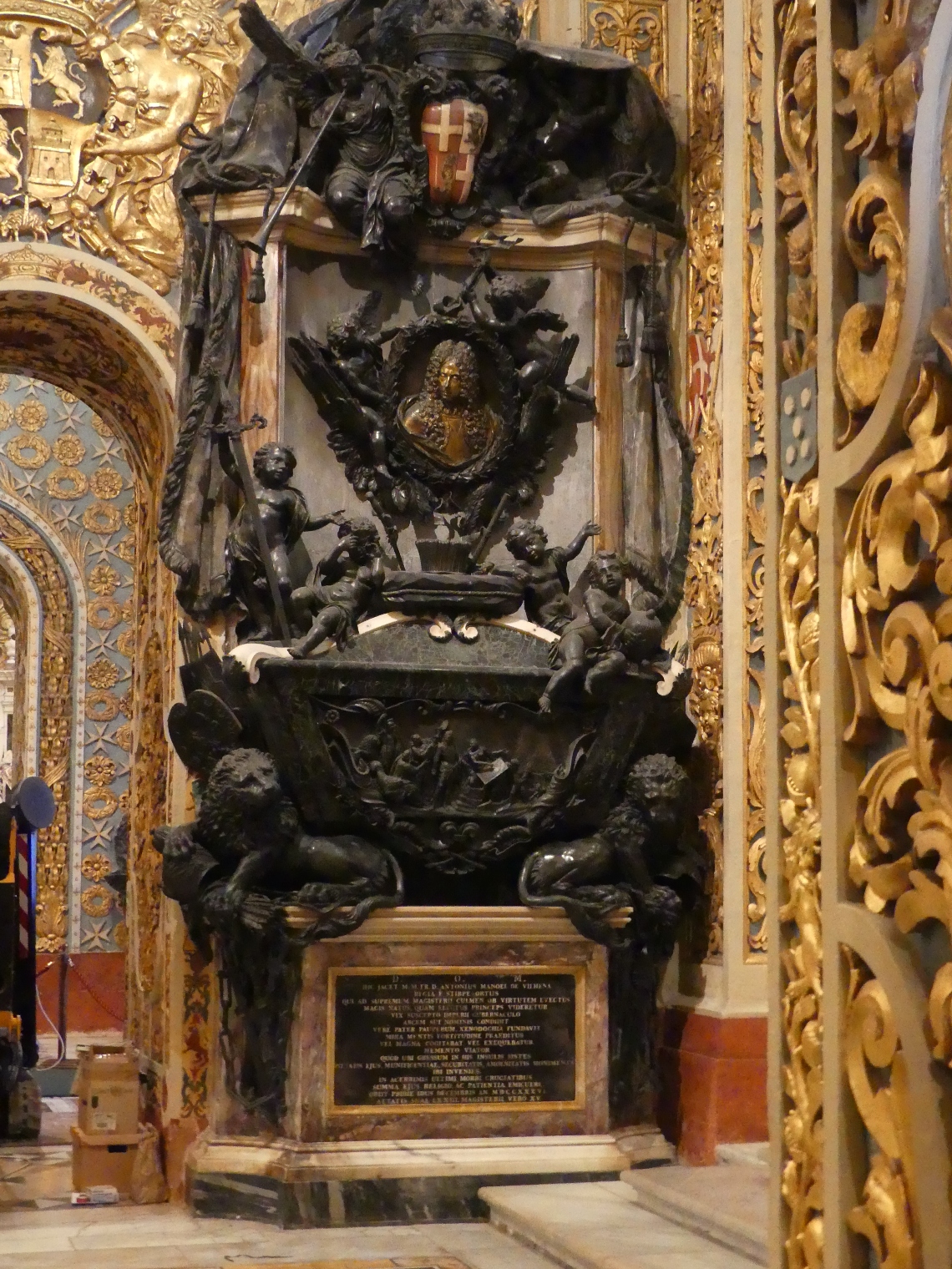 Konkatedra Św. Jana w Valetcie została wzniesiona jeszcze w XVI w., w oszczędnym stylu manierystycznym lecz jej wystrój wewnętrzny pochodzi z drugiej połowy XVII w. i olśniewa barokowym przepychem, pozbawionym wdzięku. Podobnie bombastyczny charakter mają nagrobki wielkich mistrzów, a chyba najciekawszymi elementami wystroju są płyty nagrobne kawalerów niższej rangi, intarsjowane różnokolorowym marmurem, które pokrywające prawie całą posadzkę. Powtarzające się na nich często symbole vanitas nie bardzo pasują do dumnie umieszczonych obok herbów.