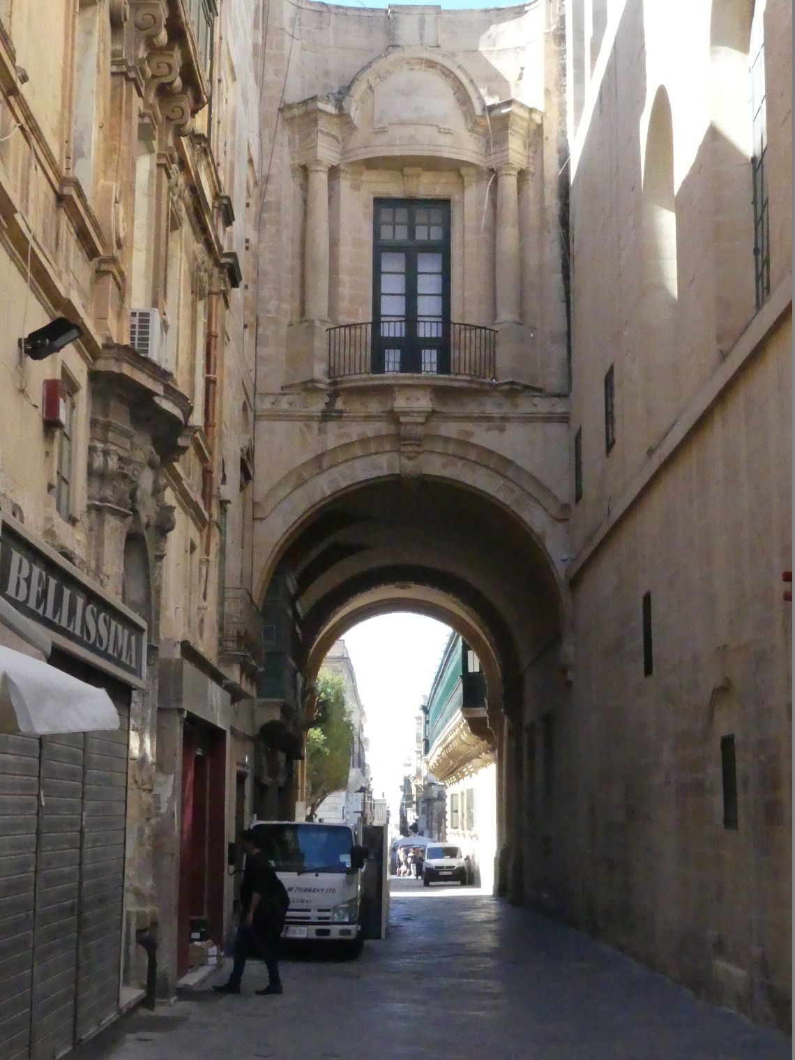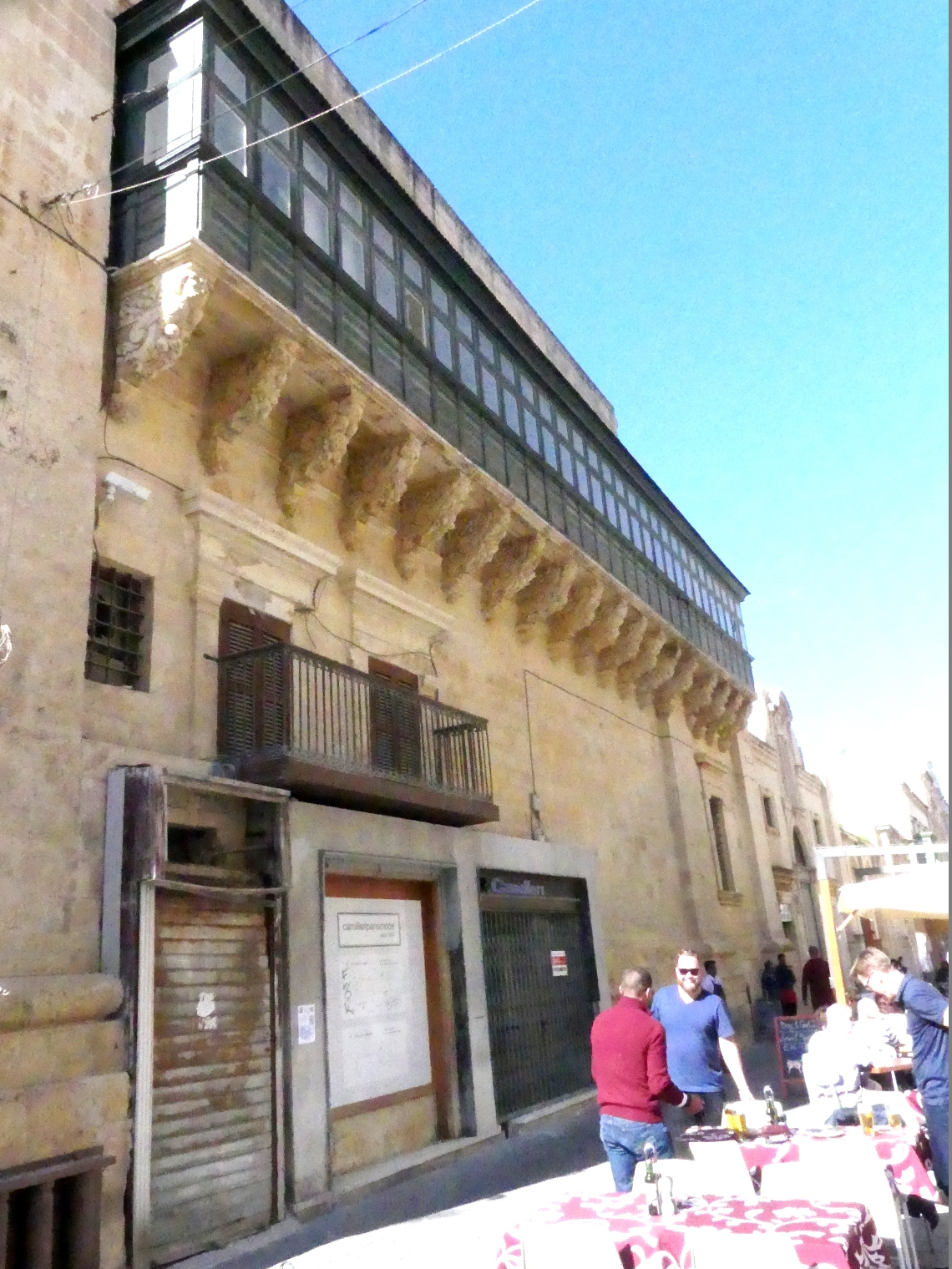 Domy w Valletcie z charakterystycznymi zamkniętymi balkonami