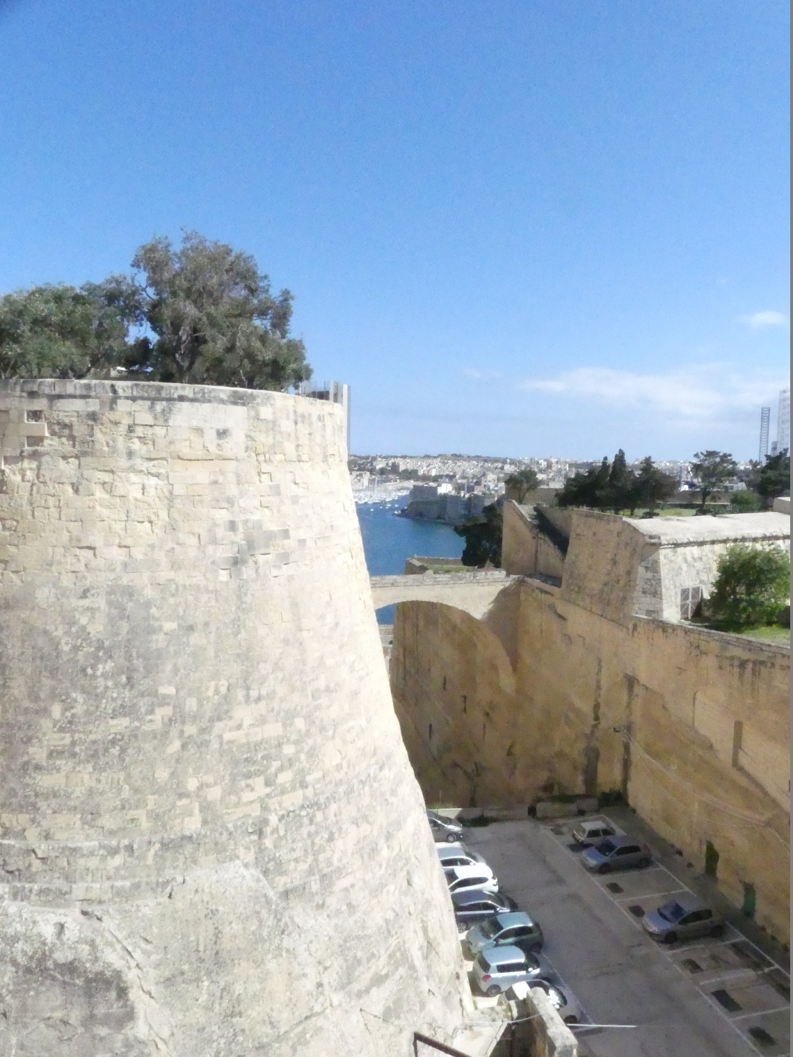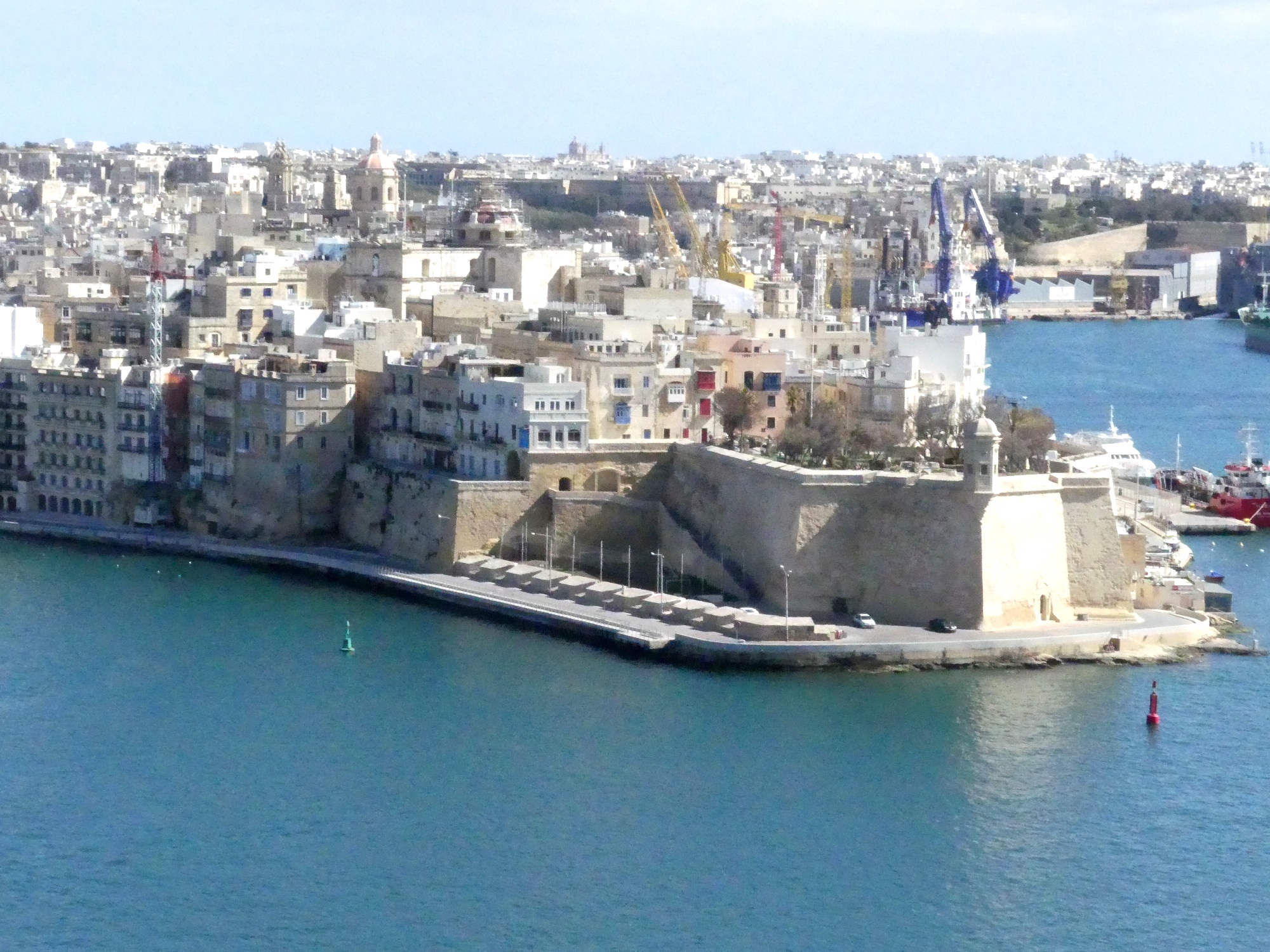 Widok z murów Valletty na Fort San Michele