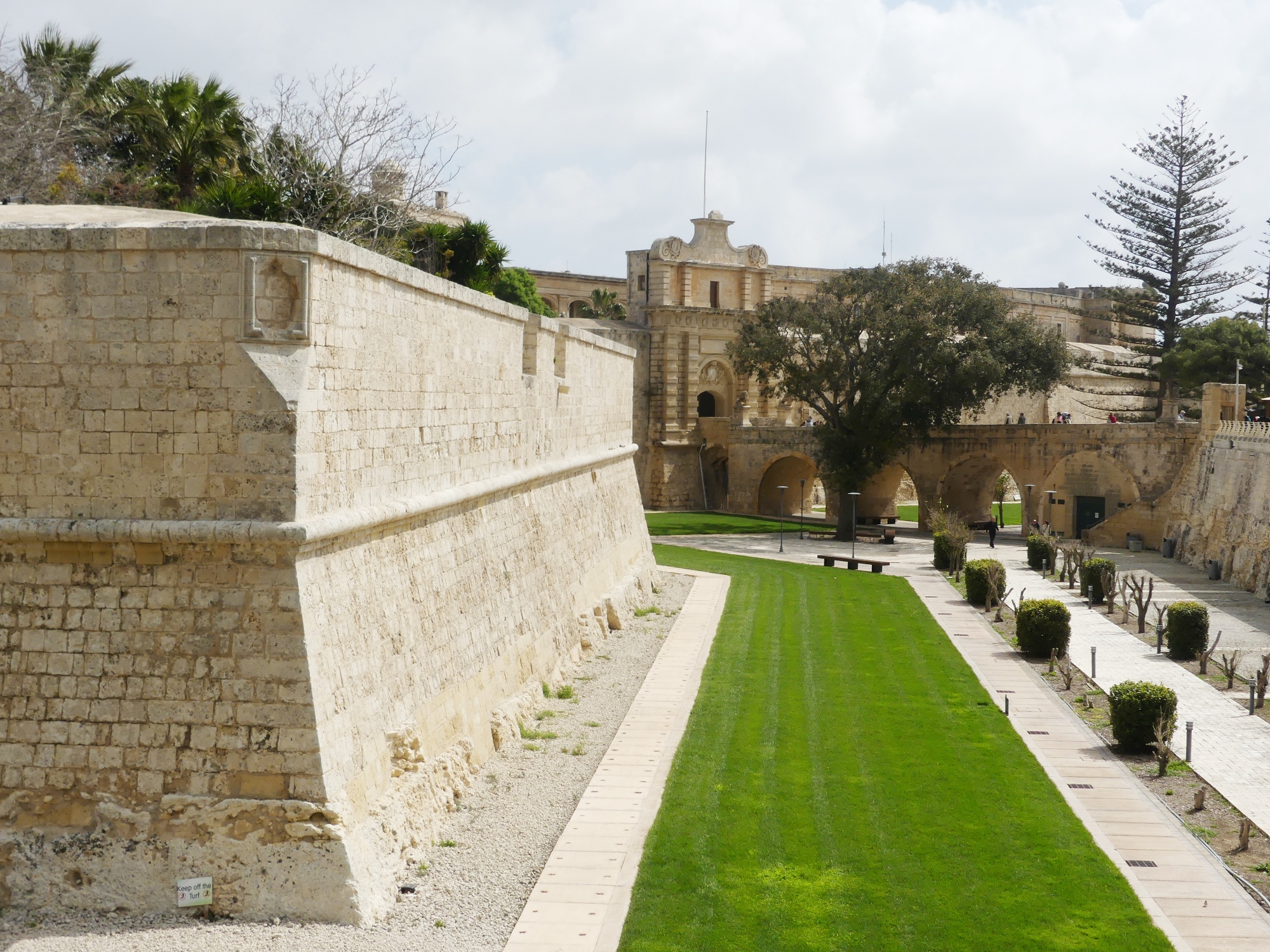 Po przeniesieniu stolicy Malty do Valletty, Mdina straciła swoje poprzednie znaczenie i zachowała starą zabudowę, aż do  trzęsienia ziemi w roku 1693, tego samego, które zniszczyło południowo wschodnią Sycylię. Po tym kataklizmie została odbudowana pod kierunkiem  francuskiego architekta Charlesa de Mondion w dość jednolitym stylu barokowym, jednakże z zachowaniem dawnej struktury miejskiej. Wydaje się jakby miasteczko zasnęło za potężnymi murami, których początki sięgają czasów arabskich i normańskich, lecz ich obecny kształt pochodzi od kawalerów. Imponująca sylwetka Mdiny ukazuje się z daleka na wzgórzu; z wieżami i kopuła katedry wyrastającymi ponad murami. Cała wzniesione jest z beżowego wapienia, o złotawym odcieniu, charakterystycznego zresztą dla zabudowy całej Malty. Wąziutkie uliczki obrzeżone są wysokimi domami, z nielicznymi, wychodzącymi na nie oknami, tak, że wydają się korytarzami  w jakimś zaczarowanym zamku. Wrażenie bajkowości podkreśla jeszcze brak ruchu kołowego i bardzo mała liczba przechodniów, drastycznie kontrastująca z zatłoczonymi ulicami Valletty.