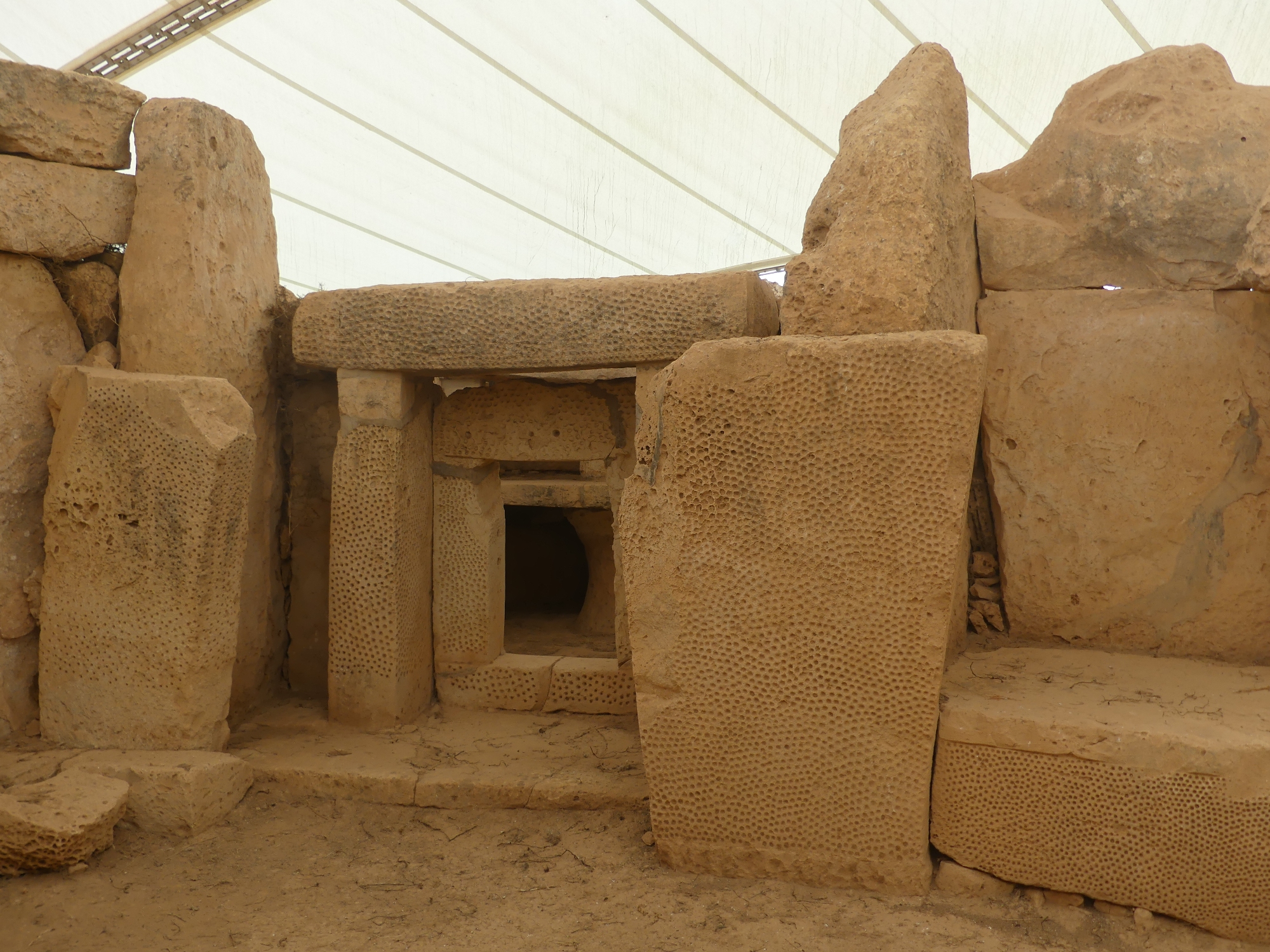 Ołtarz z Tarxien, z zamoskowanym otworem prowadzącym do wnętrza kamiennej skrzyni