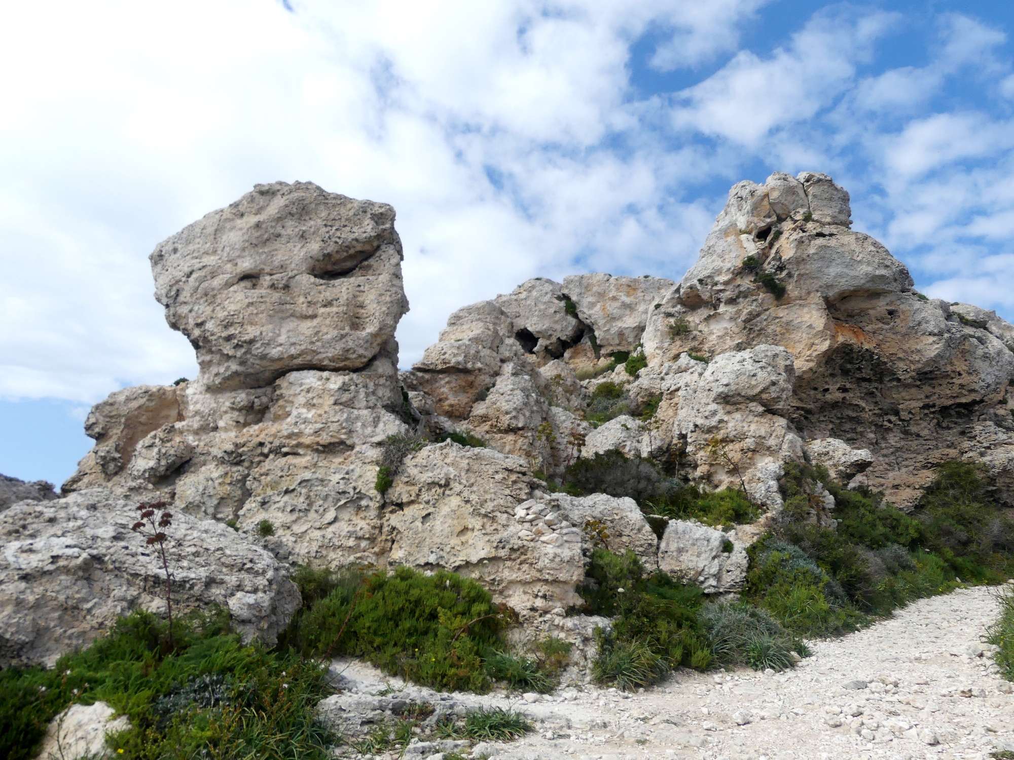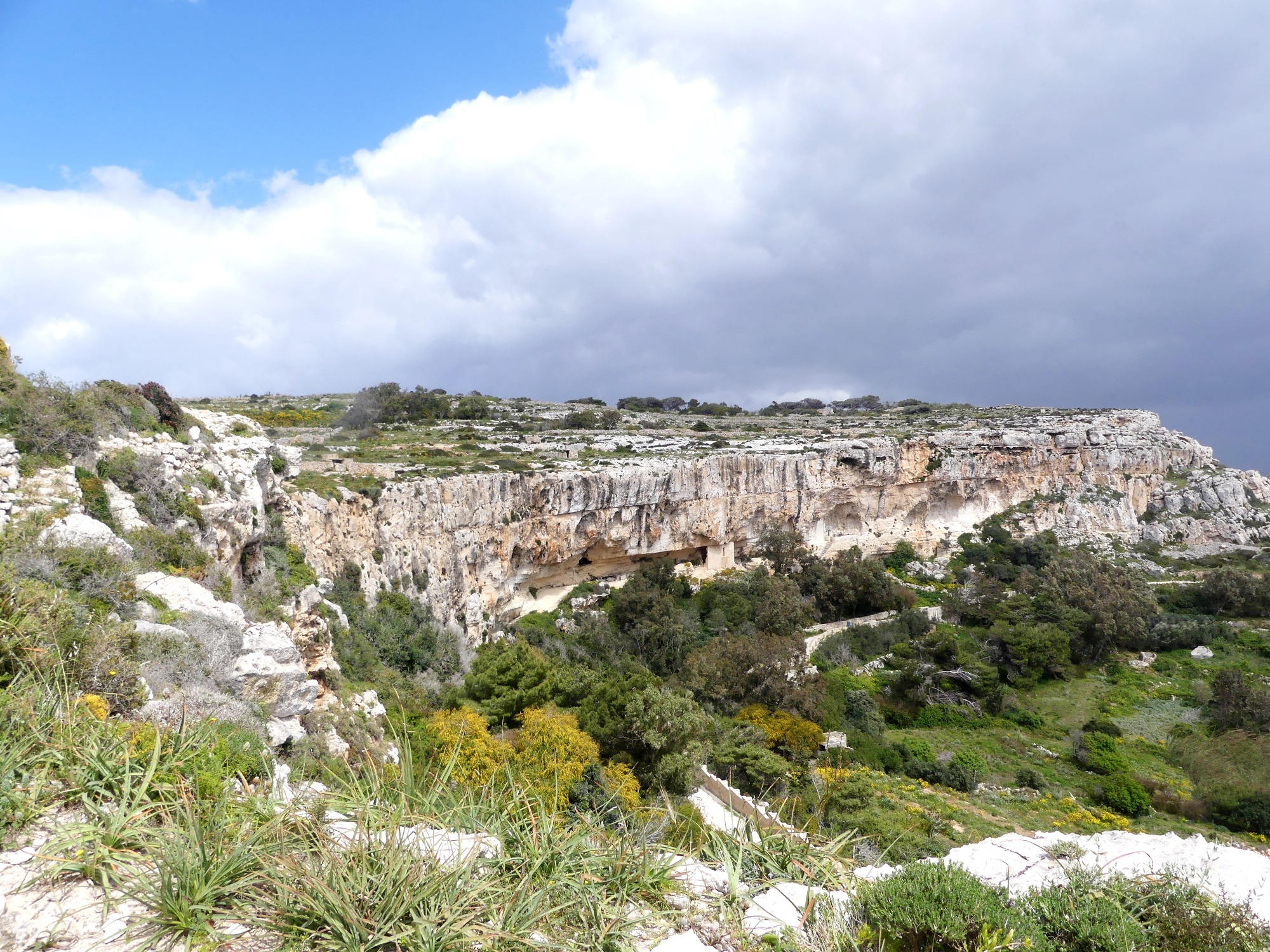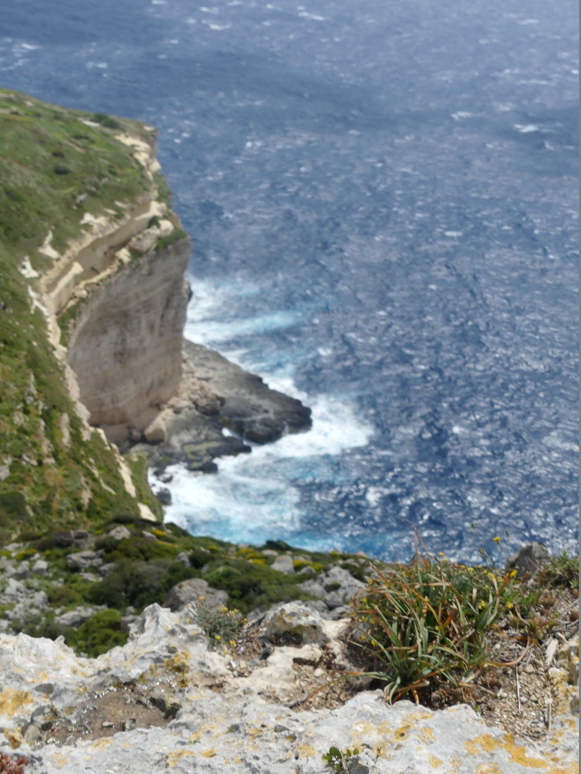 Podczas naszego pobytu na Malcie, najsłabiej eksploatowaliśmy przyrodę; była to pierwsza połowa kwietnia i na kąpiel w morzu jeszcze za wcześnie. Załączam kilka fotografii malowniczych Klifów Dingli, zbudowanych z twardego wapienia i wznoszących się na wysokość 250 m ponad poziomem morza, które biegną wzdłuż południowego wybrzeża wyspy, na odcinku ok. 5 km.  Pozostałe zdjęcia pochodzą ze spaceru łodzią do tzw. Błękitnej Groty, położonej na wschód od klifów, której nazwa pochodzi od poświaty wody, o bardzo różnym odcieniu i  intensywności niebieskiego koloru.