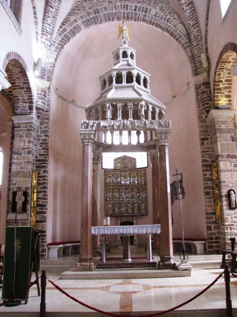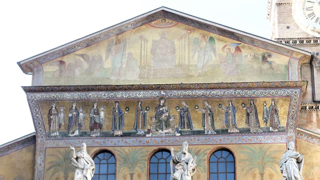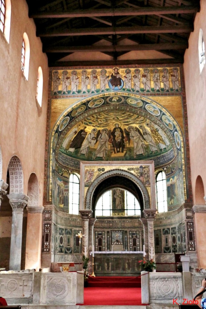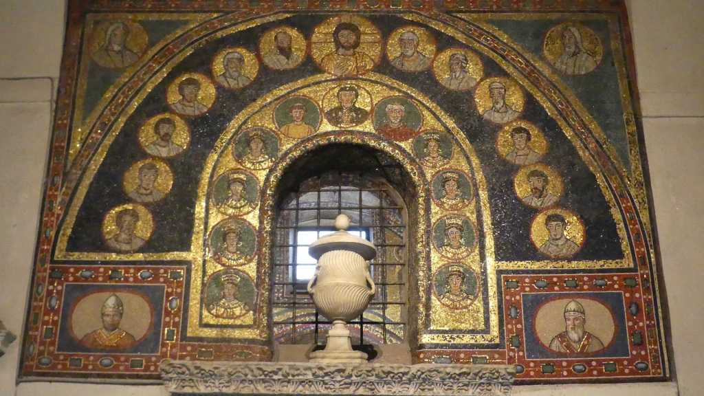 Obecnie najcenniejsze w bazylice są rzędy kolumn, oddzielających od siebie nawy, ze wspaniałymi i różnorodnymi kapitelami, pochodzącymi z różnych okresów, a przede wszystkim nieliczne, zachowane mozaiki, w szczególności pochodzące sprzed pierwszego okresu ikonoklazmu, tj. sprzed roku 730. Są to głównie duże mozaiki wotywne, ufundowane przez osoby świeckie lub instytucje społeczne, przedstawiające postacie świętych, w tym patrona bazyliki; charakteryzuje je wąska gama kolorystyczna oraz subtelne i pełne wyrazu modelowanie twarzy, a szaty pontyfikalne świętych przedstawiono ze wszystkimi szczegółami.