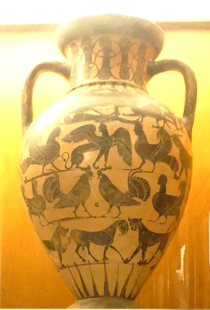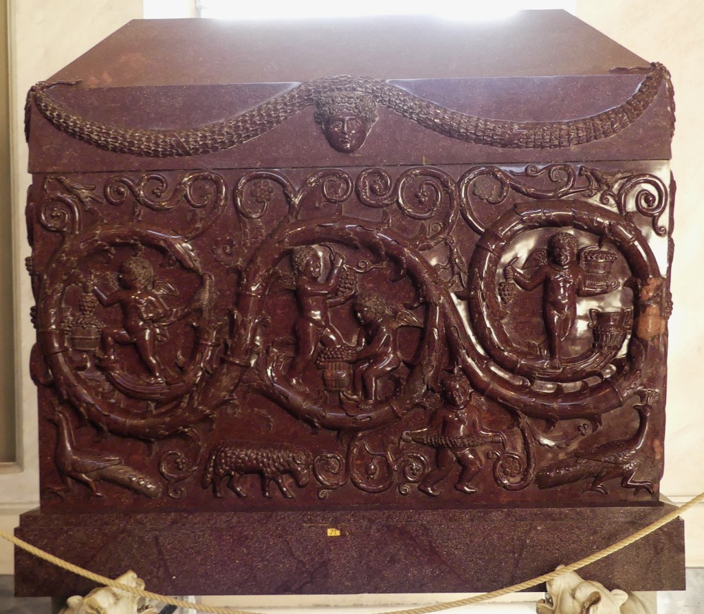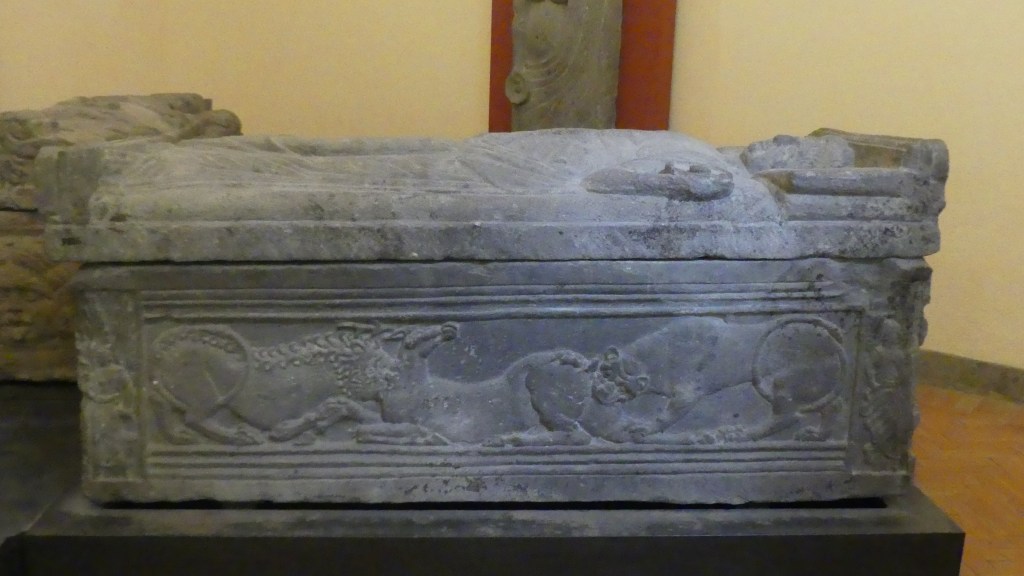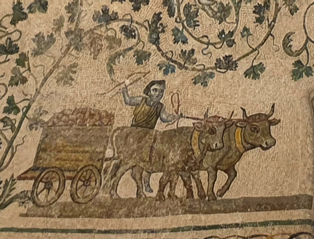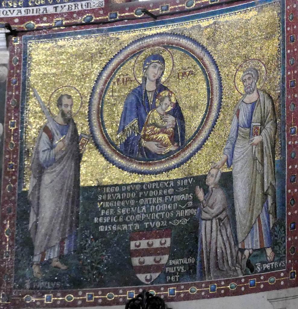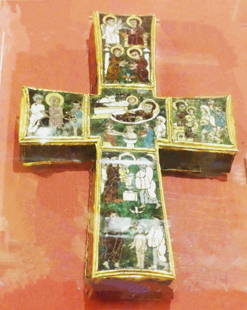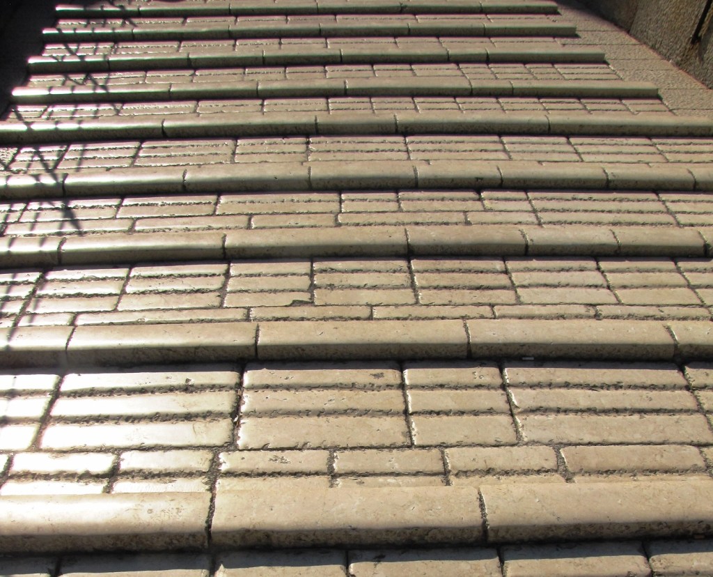 Mozaiki na sklepieniach przejść mają zupełnie inny charakter; przedstawiają wzory geometryczne oraz ptaki różnych gatunków, a ich zestawy kolorystyczne są dla mnie wręcz nieprzyjemne, nie wytrzymują porównania z ptakami na sklepieniu w pałacu arcybiskupim w Rawennie.