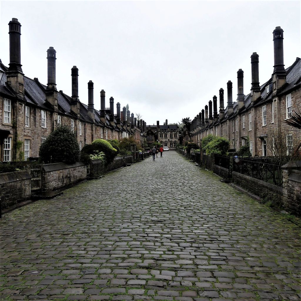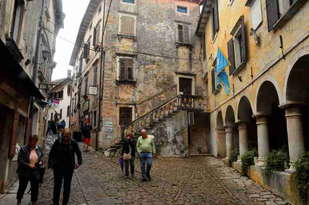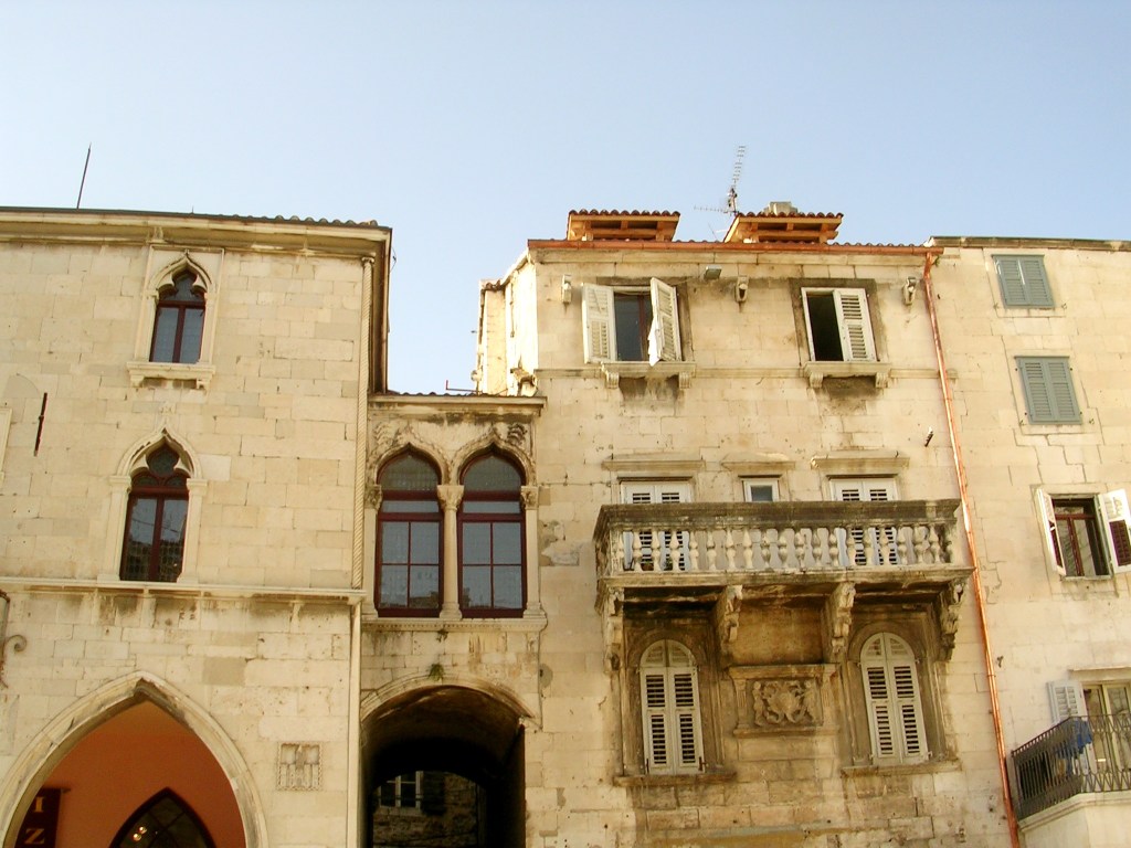 Zamknięte galerie wzdłuż całej fasady domów