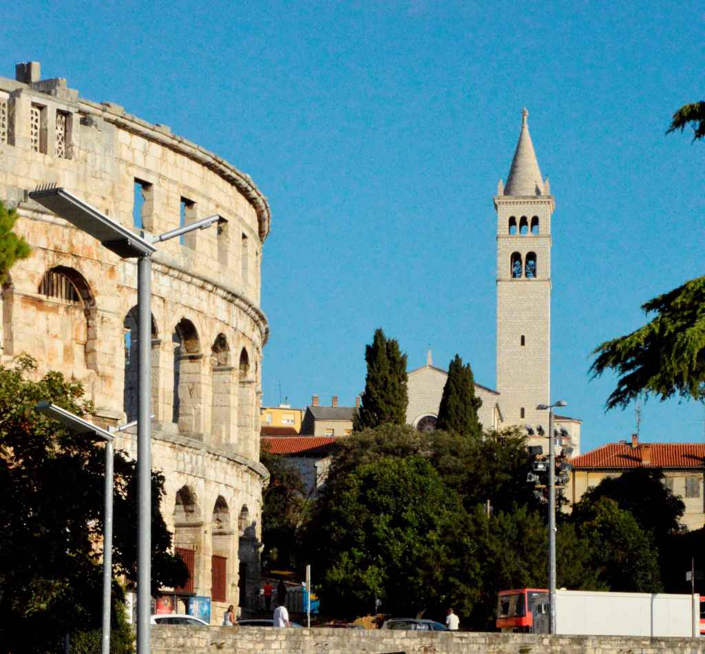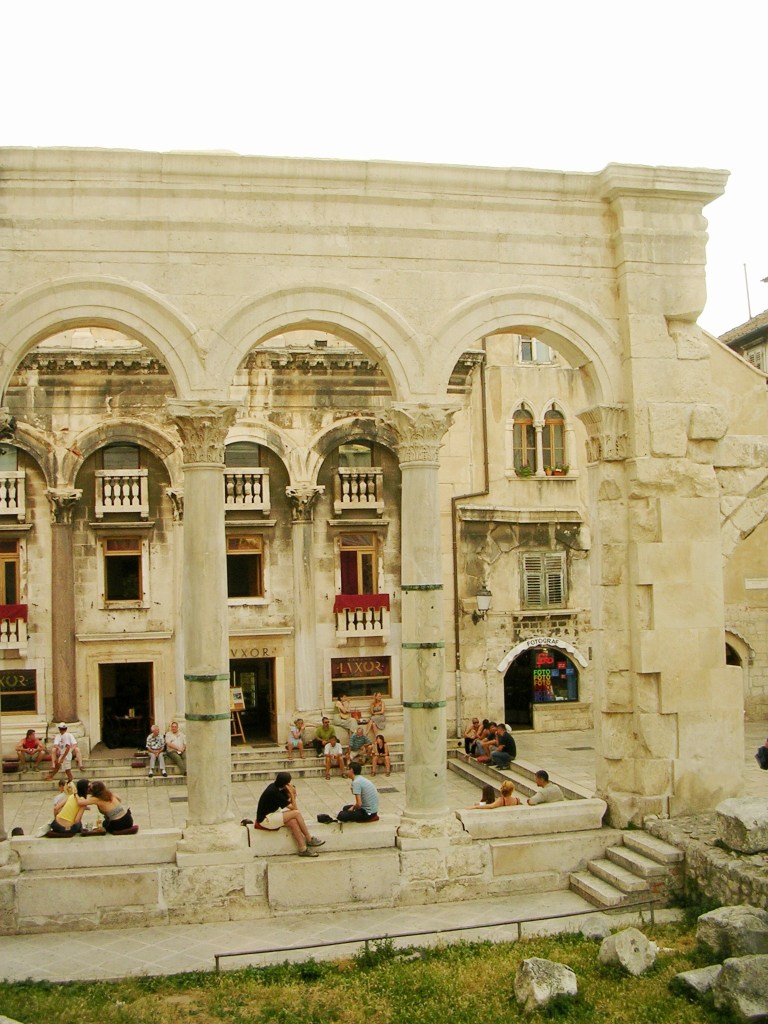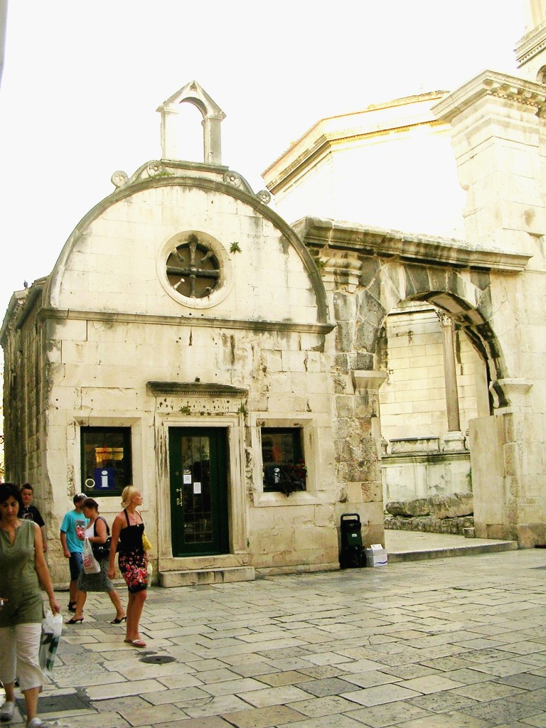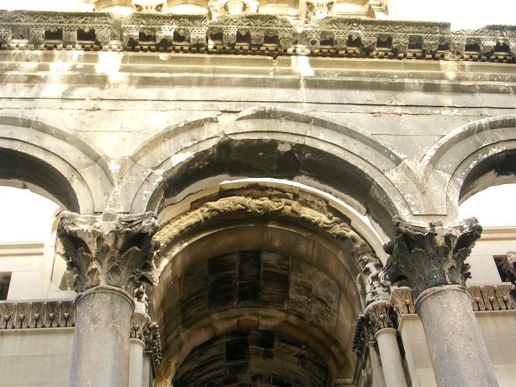 Oryginalne kolumny i łuk zachowane z bazyliki Św. Demetriusza