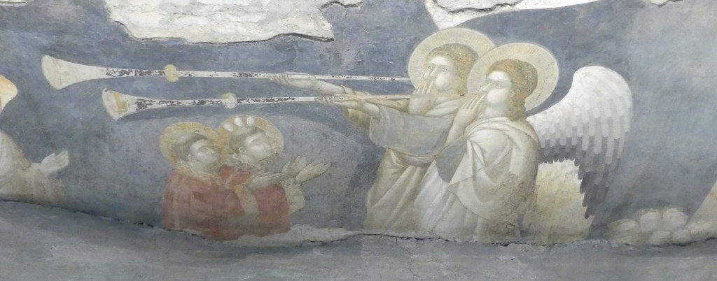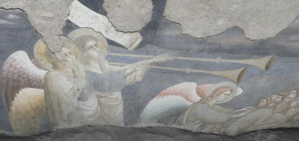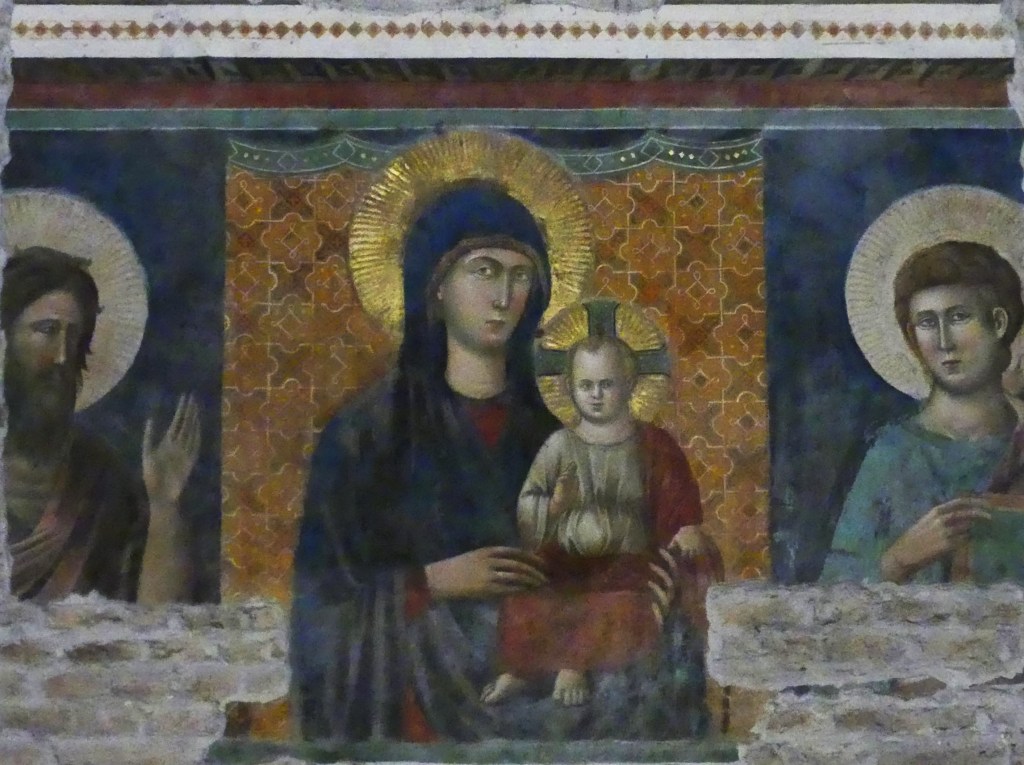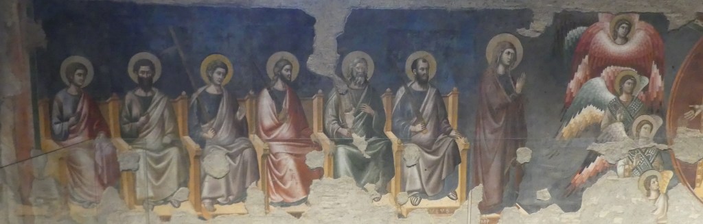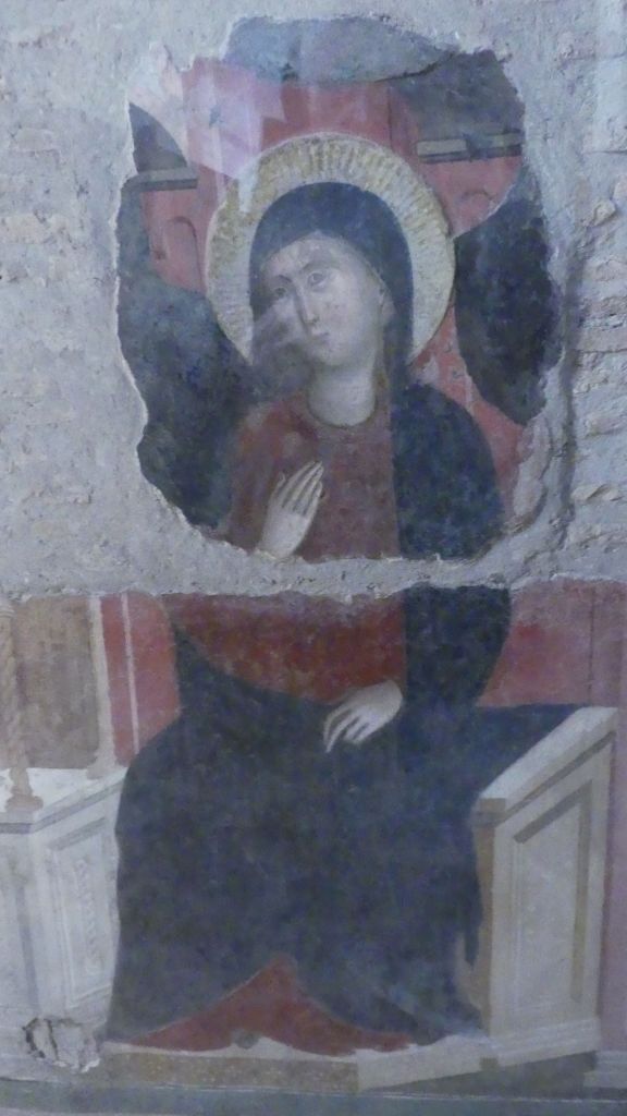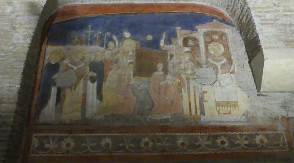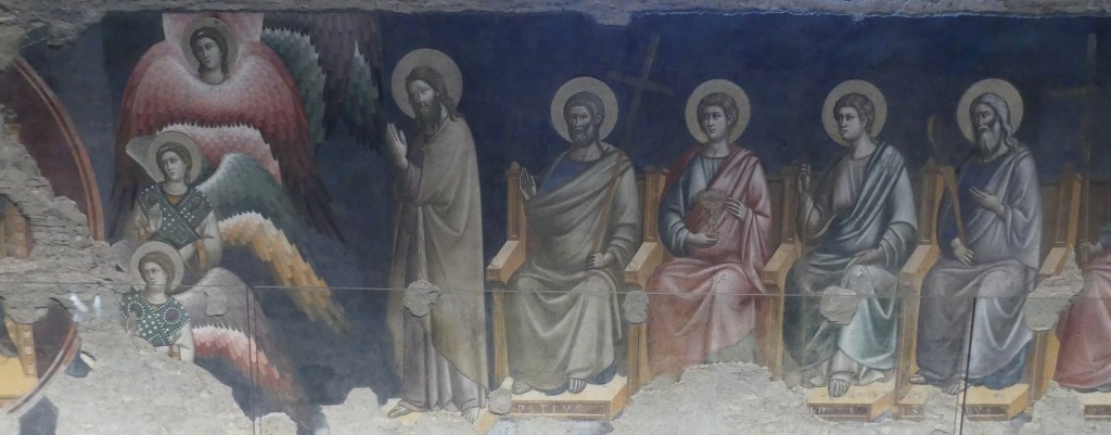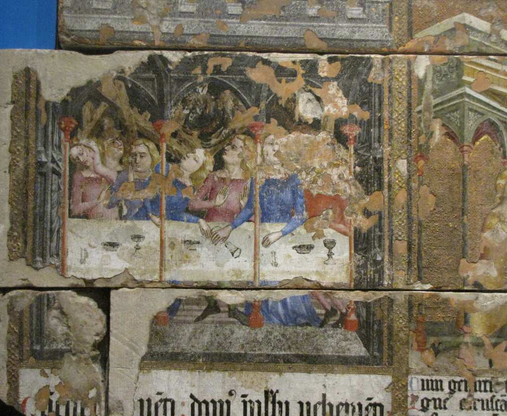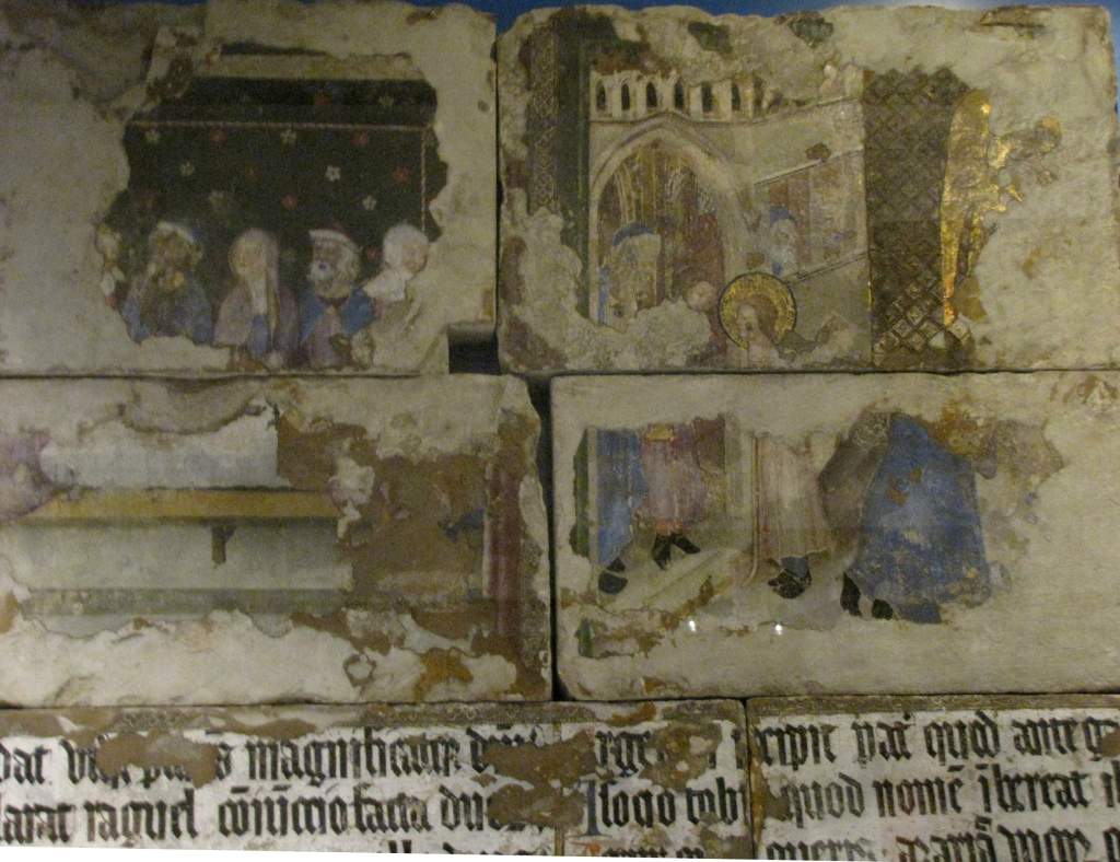 Jeszcze większego spustoszenie niż wśród mozaik dokonał pożar wśród fresków, zachowanych jedynie szczątkowo.
