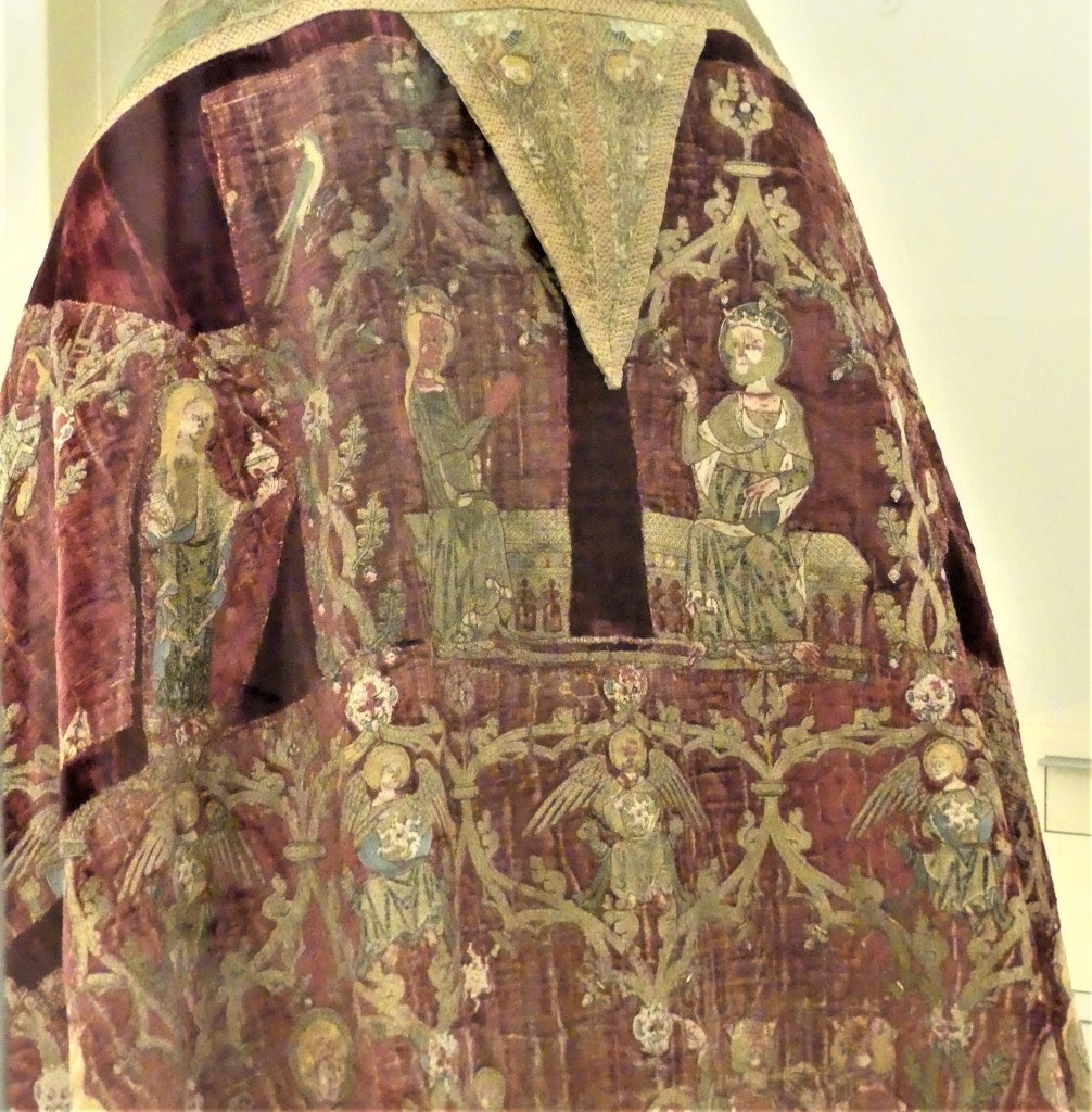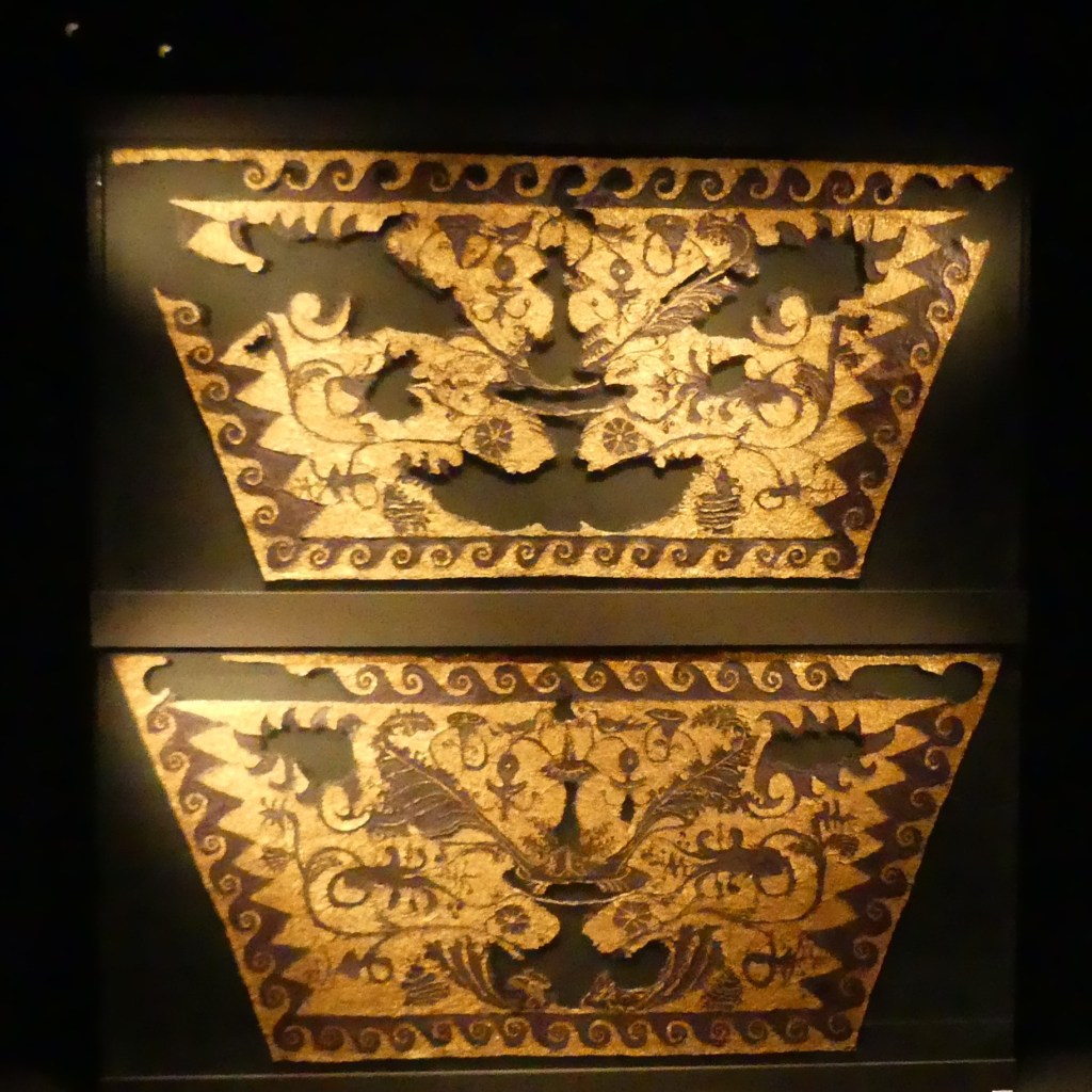 Złoto-purpurowy materiał, którym owinięte były kości młodej kobiety, leżące w przedsionku Grobowca II