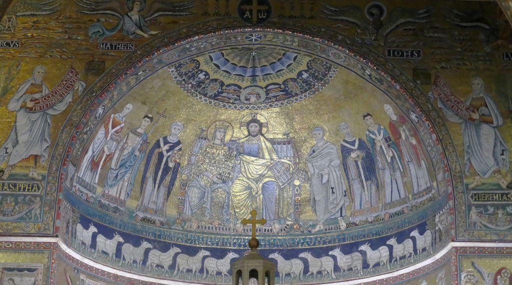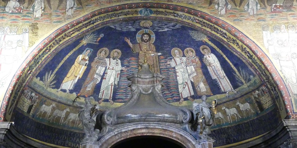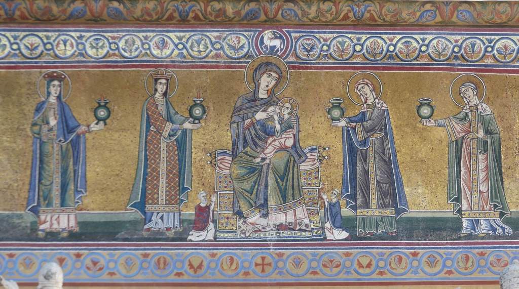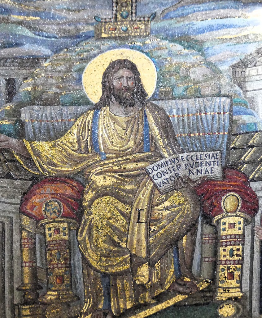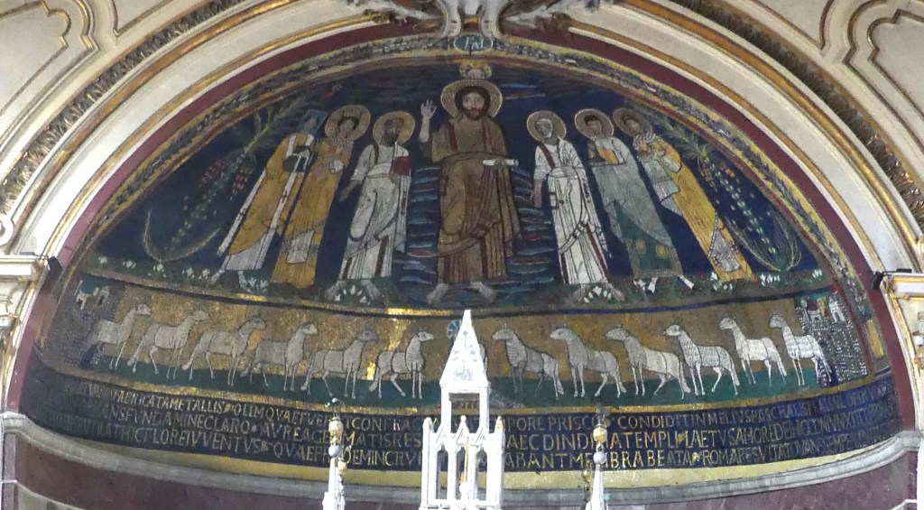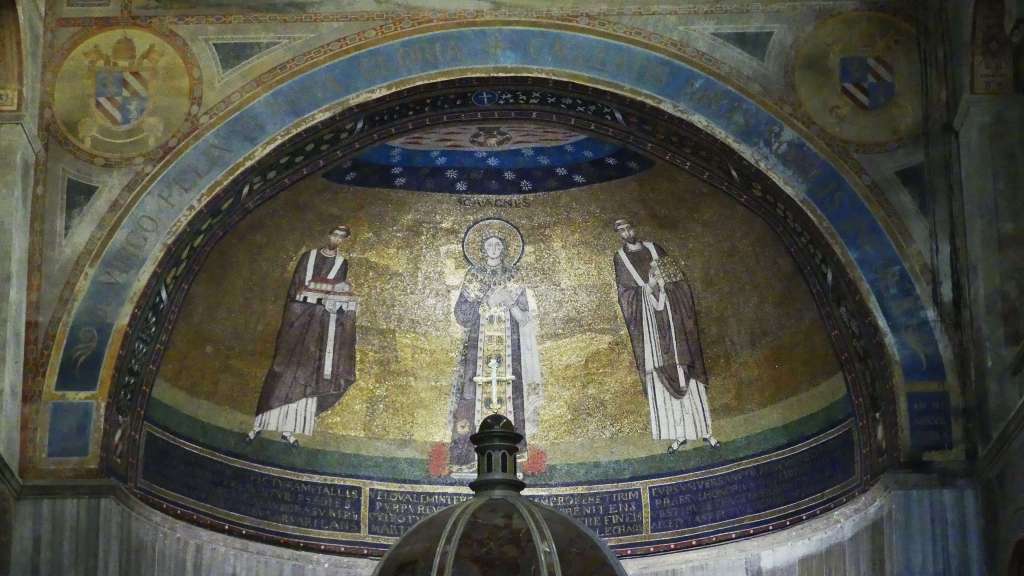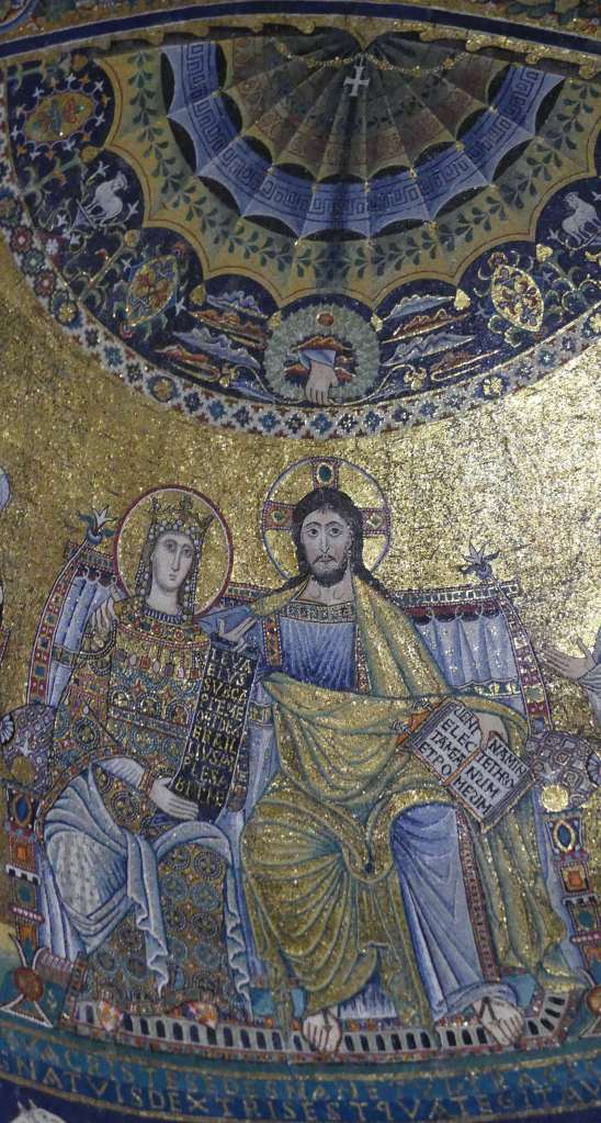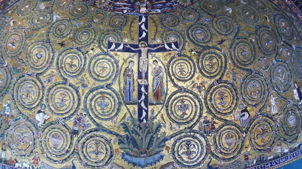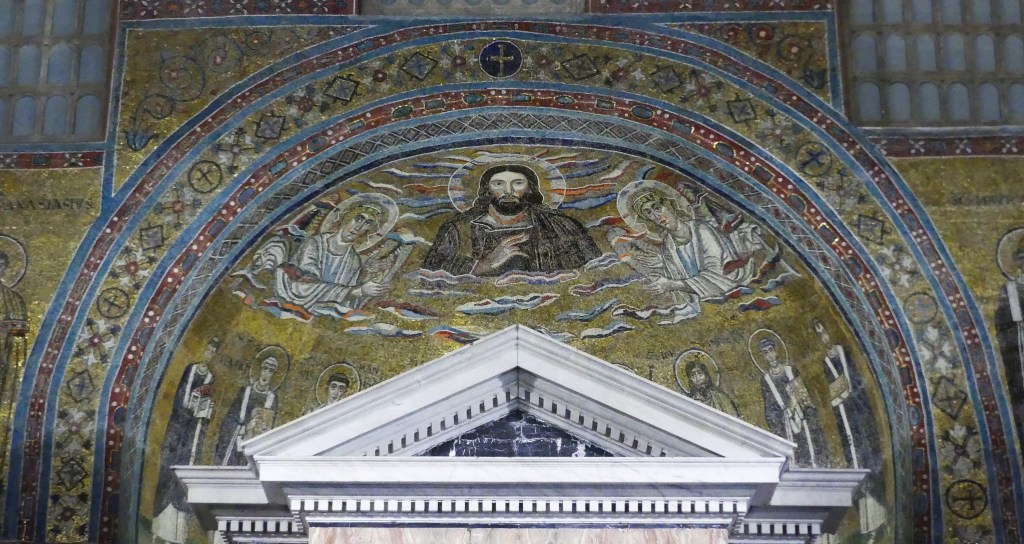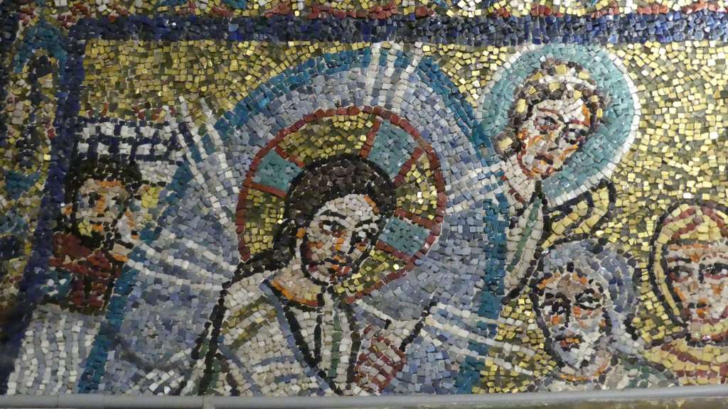 Na przełomie piątego i szóstego wieku konchę absydy kościoła udekorowano mozaiką, w stylu zbliżonym do mozaik pogańskich z tego okresu – uchodzącą za jedną najwybitniejszych mozaik wczesnochrześcijańskich – przedstawiającą młodzieńczego Chrystusa siedzącego na tęczy i otoczonego świetlistą nimbem, z prawą ręką wzniesioną w geście błogosławieństwa, a w lewej trzymającego rozwinięty zwój z napisem: „Oto nasz Bóg, Ten któremu zaufaliśmy, że nas wybawi” (Iz. 25:9). Wokół nimbu umieszczono symbole czterech Ewangelistów dzierżące ozdobne księgi Ewangelii, a po bokach figurują postacie proroków starotestamentowych, Ezechiela i Habakuka. Poniżej cztery rzeki raju spływają do Jordanu, w którym pluskają się ryby jak również pogański bóg rzeki, a w tle widać ukwieconą łąkę. Delikatne kolory mozaiki zapewniają harmonijną całość.