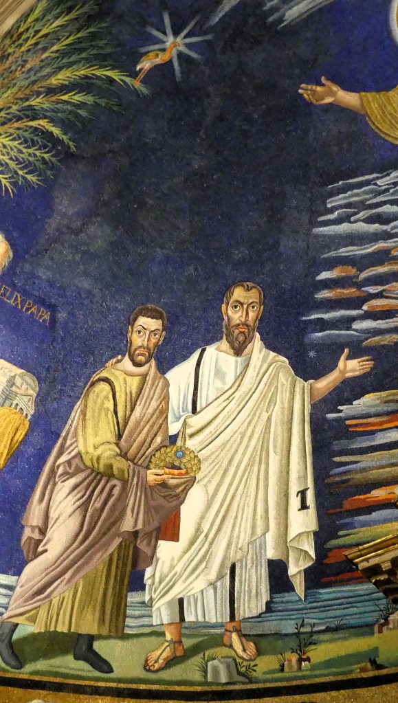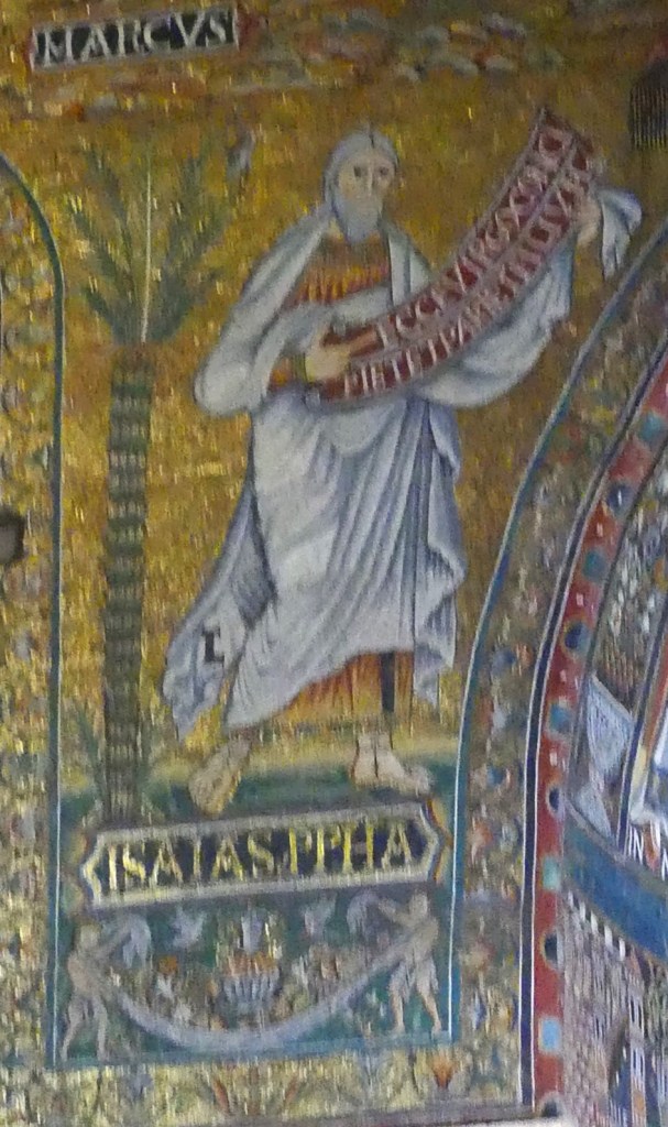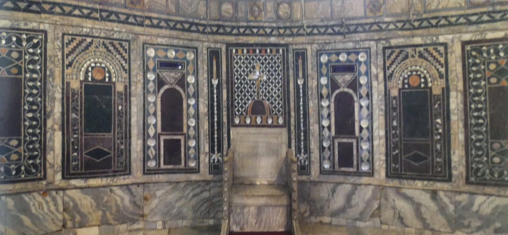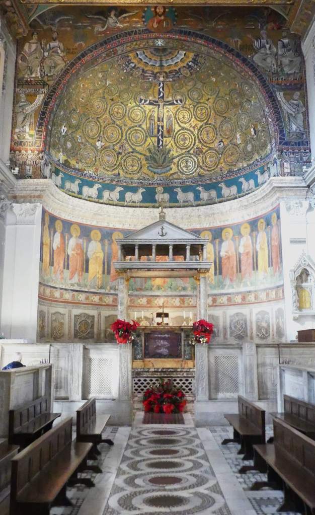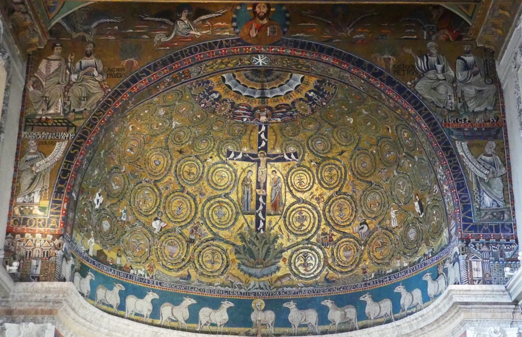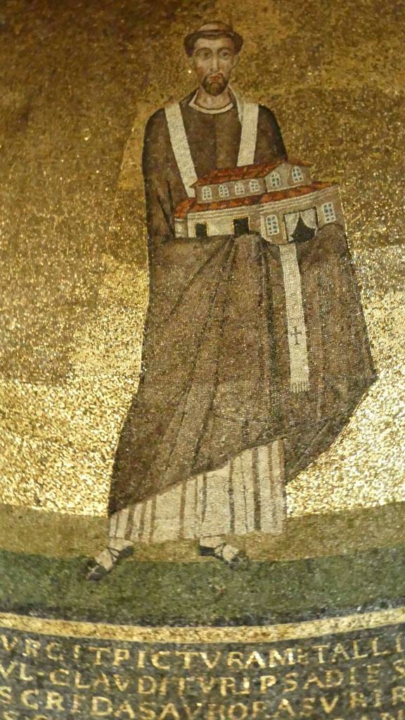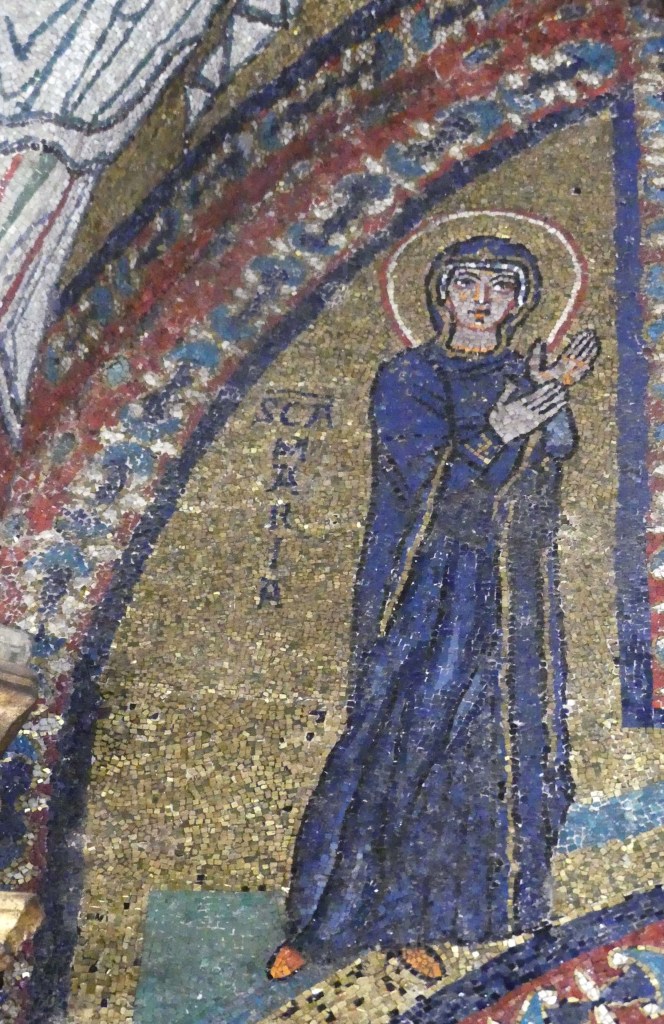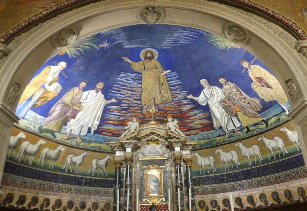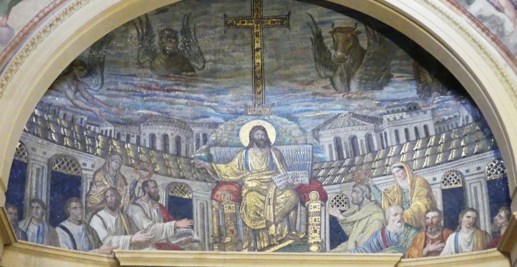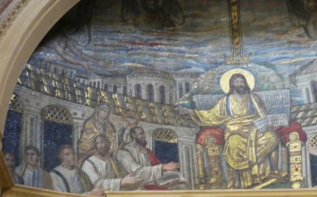 Na przełomie piątego i szóstego wieku konchę absydy kościoła udekorowano mozaiką, w stylu zbliżonym do mozaik pogańskich z tego okresu – uchodzącą za jedną najwybitniejszych mozaik wczesnochrześcijańskich – przedstawiającą młodzieńczego Chrystusa siedzącego na tęczy i otoczonego świetlistą nimbem, z prawą ręką wzniesioną w geście błogosławieństwa, a w lewej trzymającego rozwinięty zwój z napisem: „Oto nasz Bóg, Ten któremu zaufaliśmy, że nas wybawi” (Iz. 25:9). Wokół nimbu umieszczono symbole czterech Ewangelistów dzierżące ozdobne księgi Ewangelii, a po bokach figurują postacie proroków starotestamentowych, Ezechiela i Habakuka. Poniżej cztery rzeki raju spływają do Jordanu, w którym pluskają się ryby jak również pogański bóg rzeki, a w tle widać ukwieconą łąkę. Delikatne kolory mozaiki zapewniają harmonijną całość.
