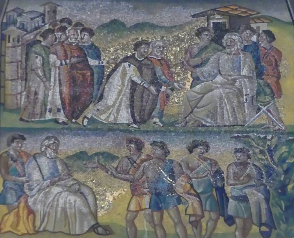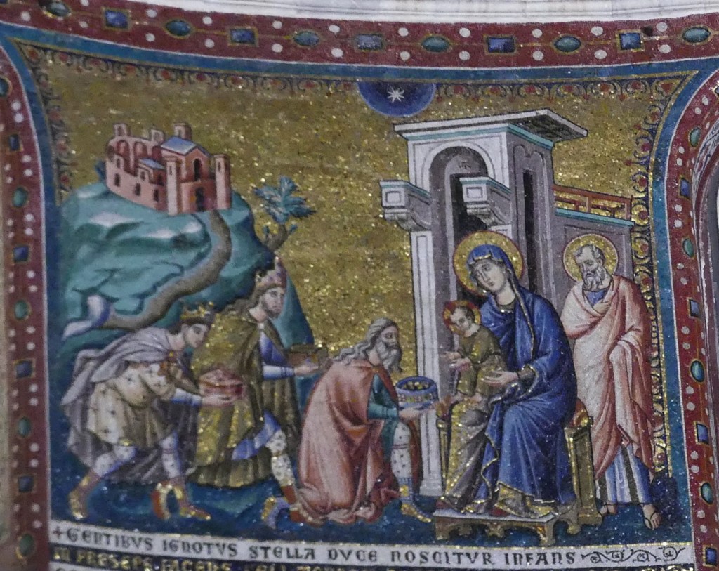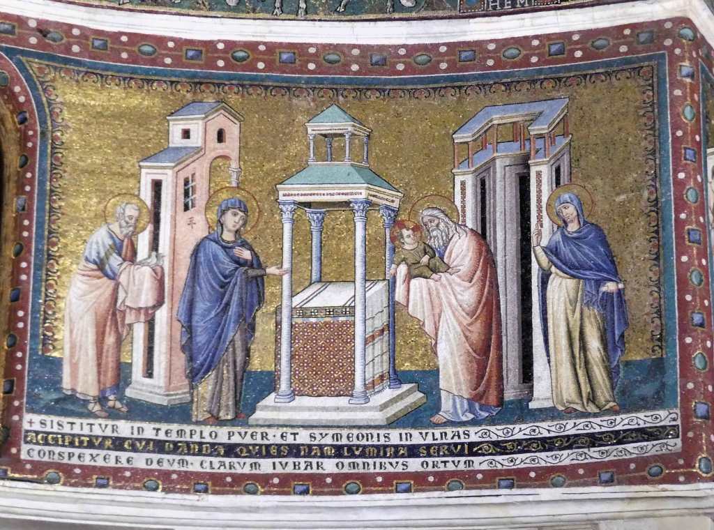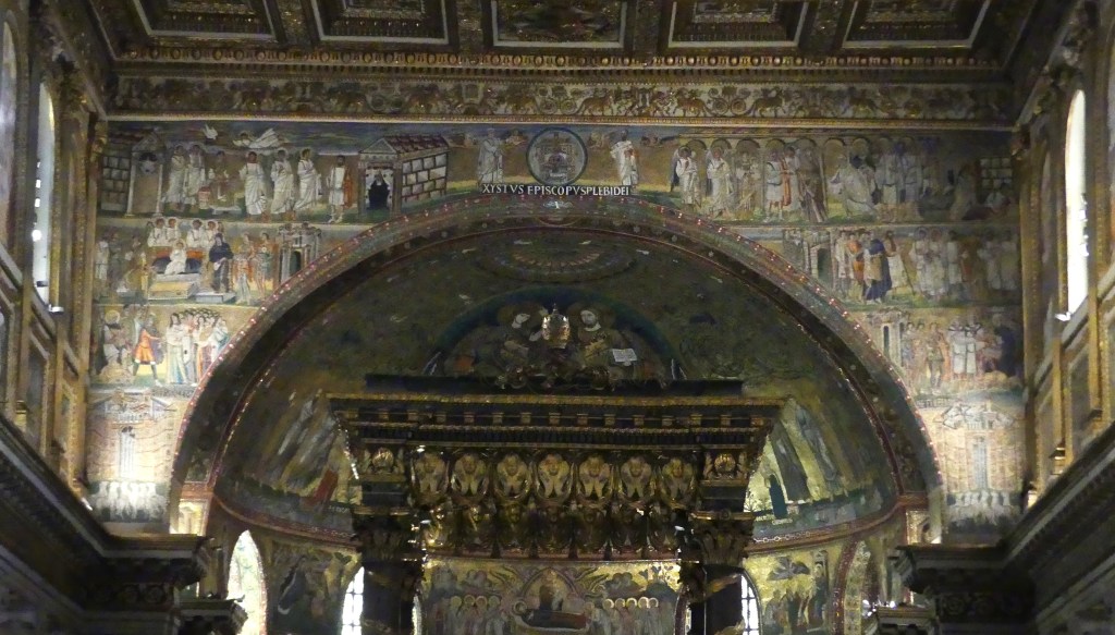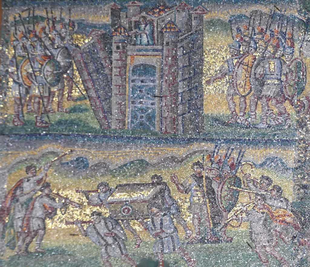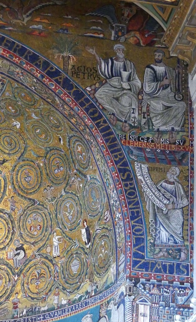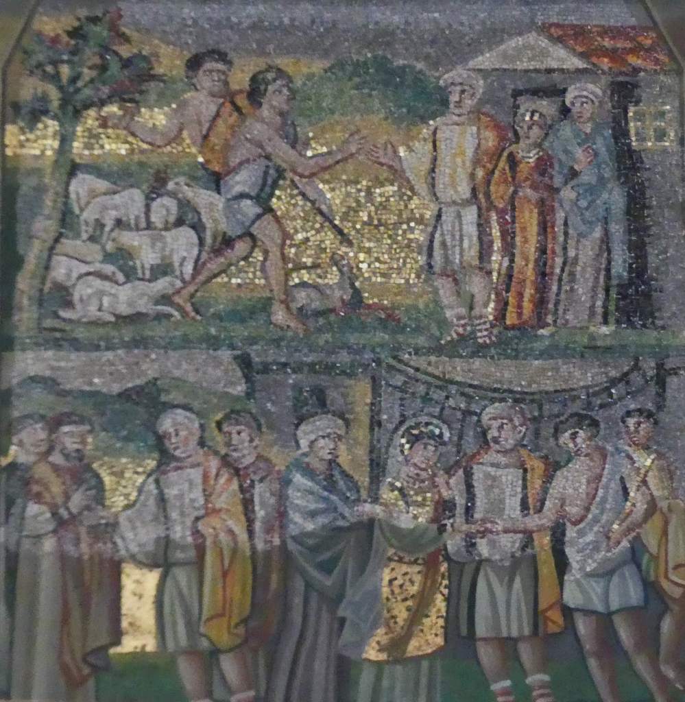 Na przełomie piątego i szóstego wieku konchę absydy kościoła udekorowano mozaiką, w stylu zbliżonym do mozaik pogańskich z tego okresu – uchodzącą za jedną najwybitniejszych mozaik wczesnochrześcijańskich – przedstawiającą młodzieńczego Chrystusa siedzącego na tęczy i otoczonego świetlistą nimbem, z prawą ręką wzniesioną w geście błogosławieństwa, a w lewej trzymającego rozwinięty zwój z napisem: „Oto nasz Bóg, Ten któremu zaufaliśmy, że nas wybawi” (Iz. 25:9). Wokół nimbu umieszczono symbole czterech Ewangelistów dzierżące ozdobne księgi Ewangelii, a po bokach figurują postacie proroków starotestamentowych, Ezechiela i Habakuka. Poniżej cztery rzeki raju spływają do Jordanu, w którym pluskają się ryby jak również pogański bóg rzeki, a w tle widać ukwieconą łąkę. Delikatne kolory mozaiki zapewniają harmonijną całość.