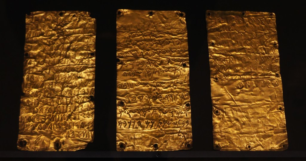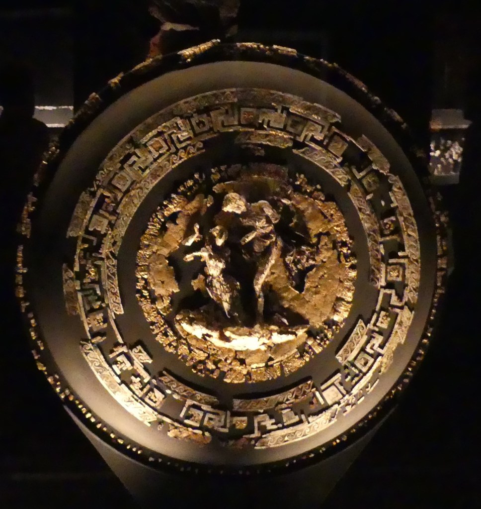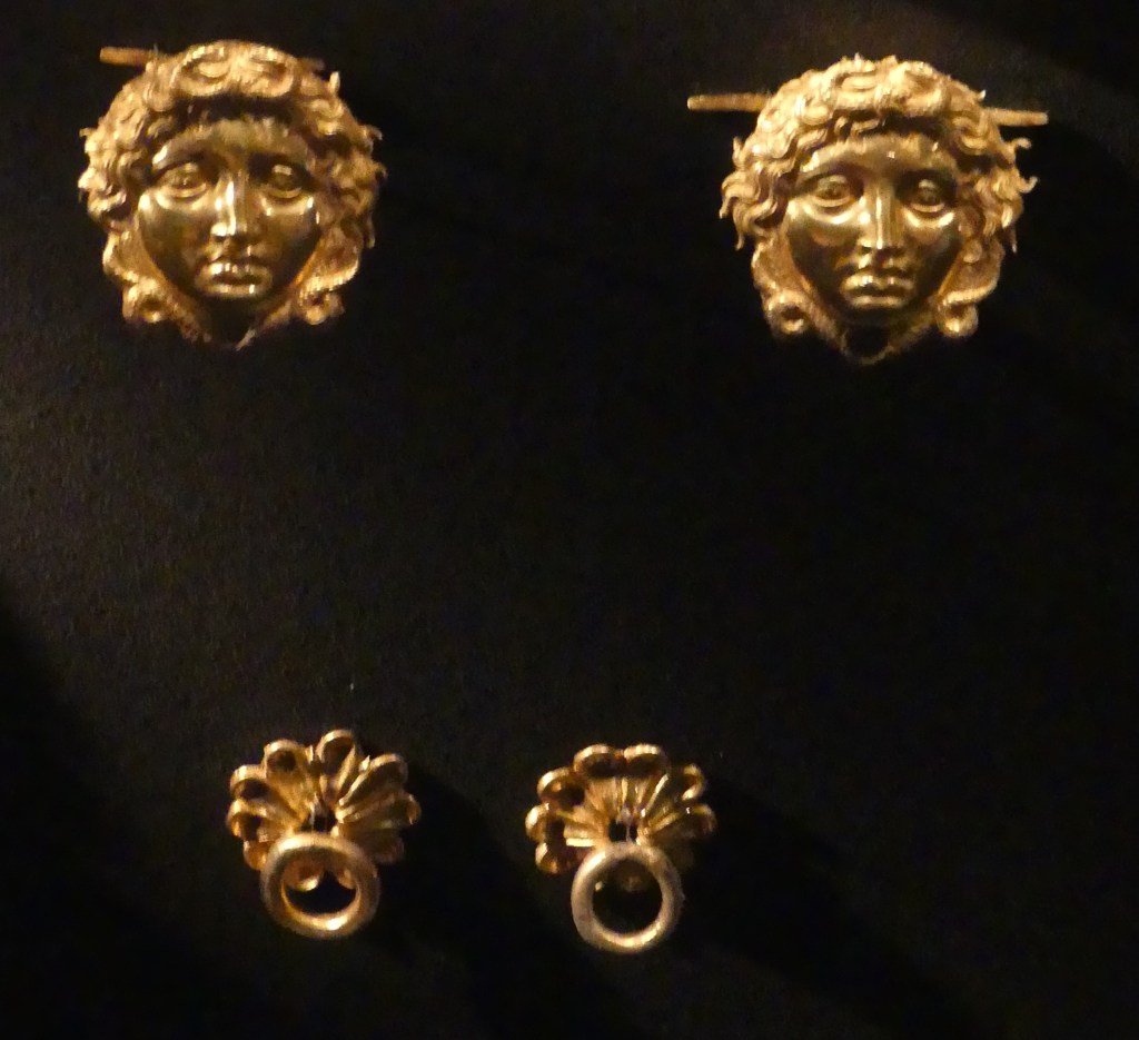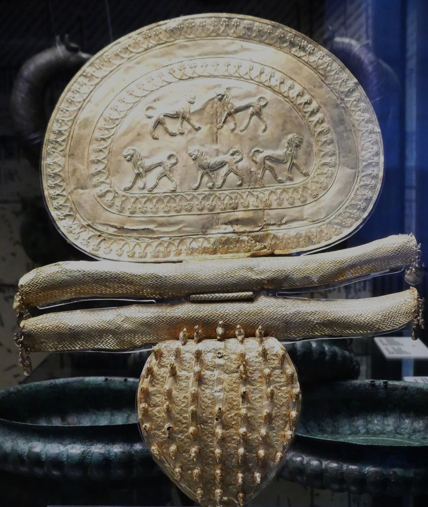Złoty wieniec z liści i kwiatów mirtu oraz ozdobne złote krążki , z przedsionka Grobowca II