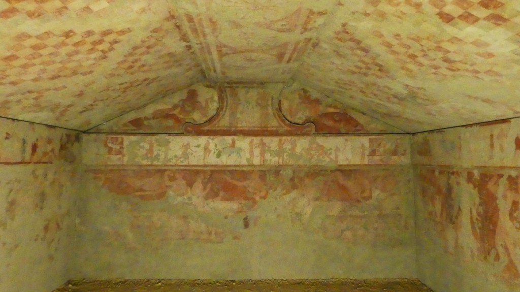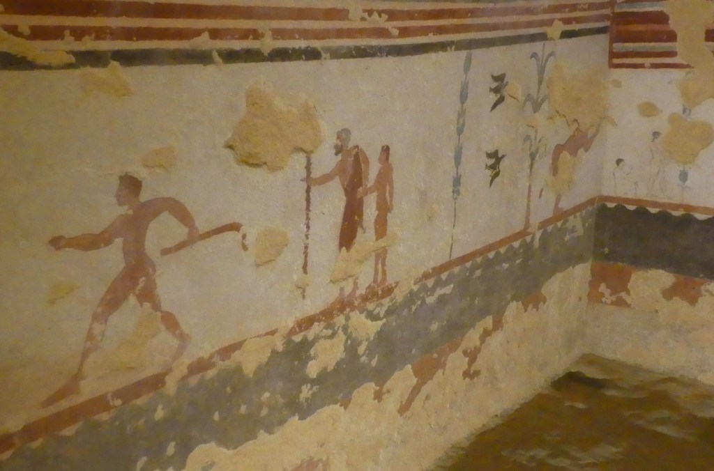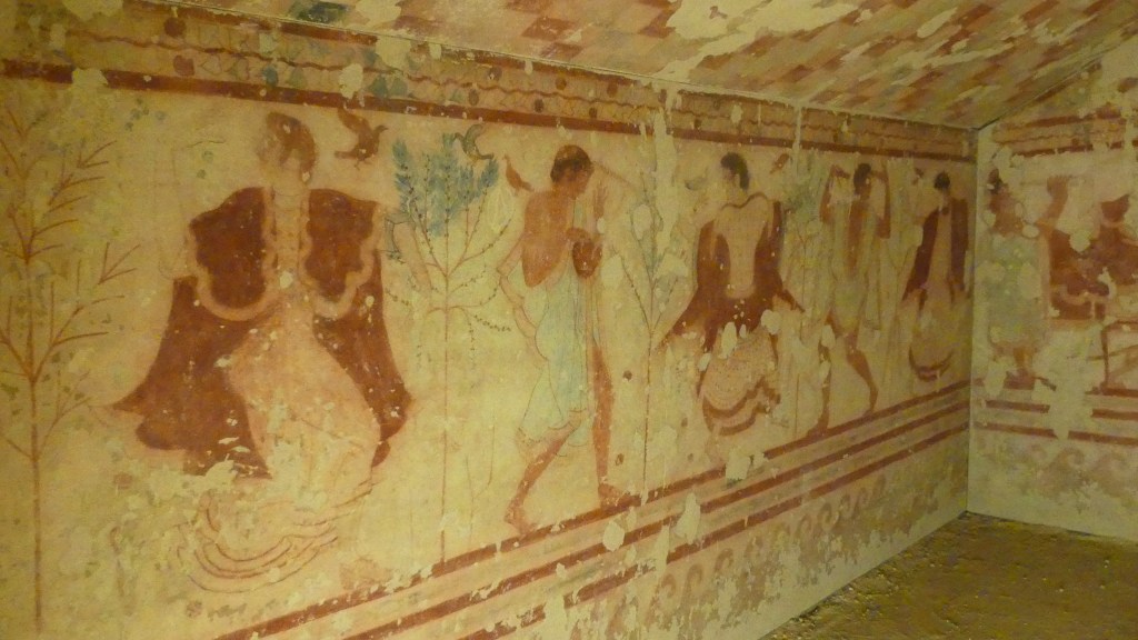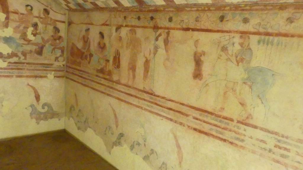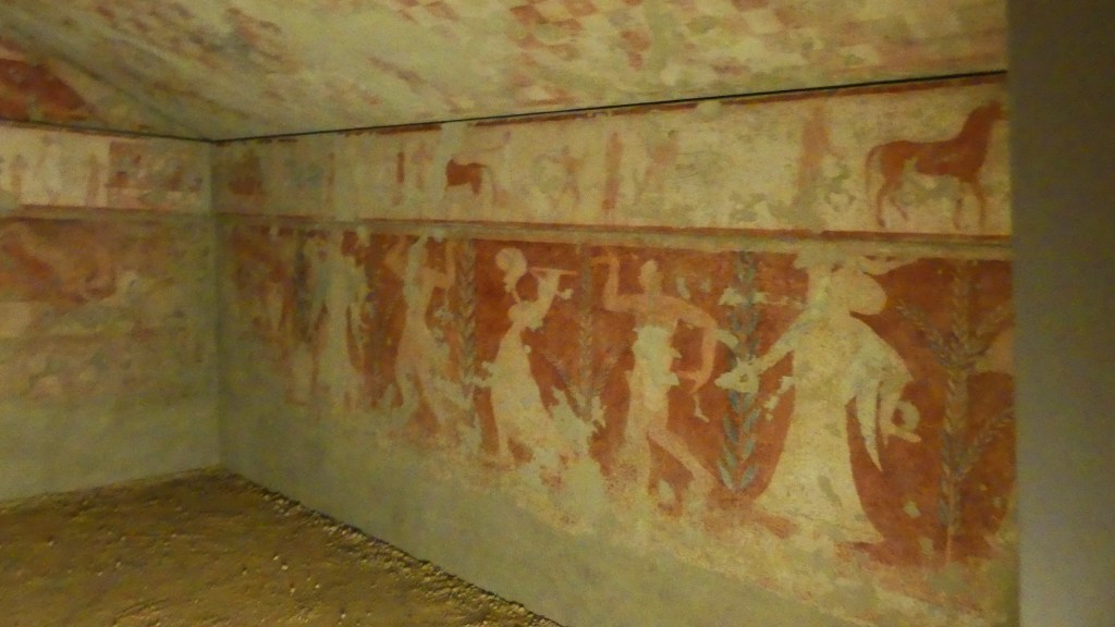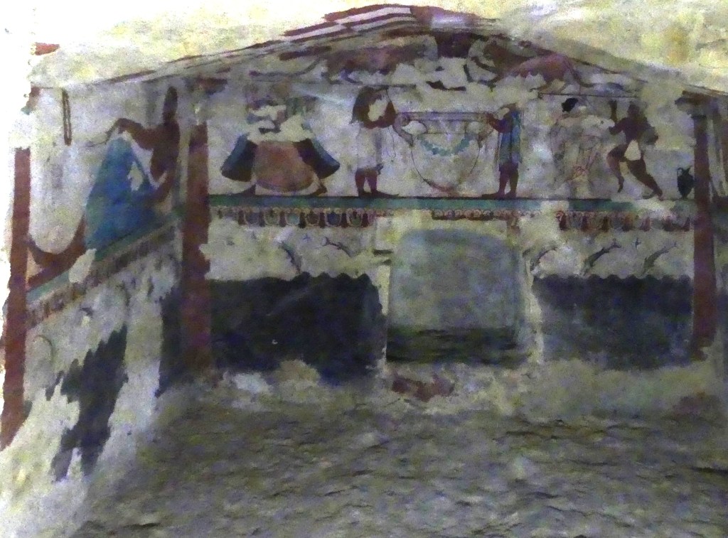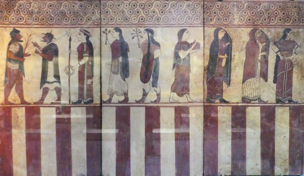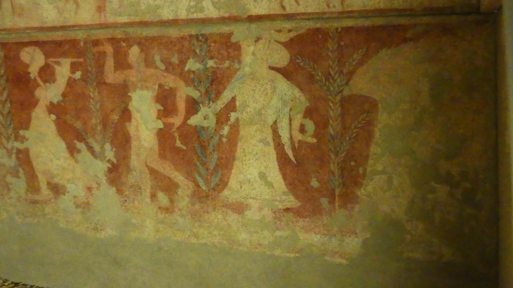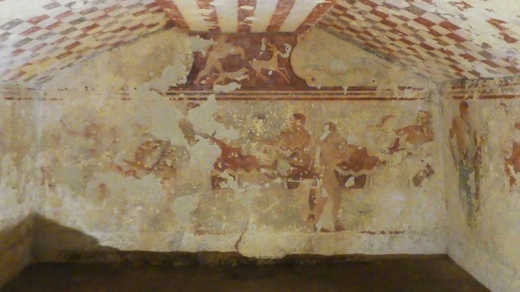 Natomiast z Grobowca I, z którego pozostały tylko kolumny fasady, pochodzi cykl fresków przypisywanych Nikomachosowi z Teb, poświęcony Persefonie, w którym najlepiej zachowana jest scena porwania Persefony przez Hadesa, uwożącego ją dwukołowym rydwanem. Postać sługi z pochodnią, biegnącego przed rydwanem, sugeruje prędkość pojazdu, a nimfa, która towarzyszyła Persefonie, kuli się przy drodze i osłania wznosząc ręką, z rozpostartą dłonią, w geście przerażenia. Z dynamiką tej sceny kontrastuje cichy smutek Demeter, zrozpaczonej porwaniem córki, przedstawiony na sąsiednim fresku. Freski te należą do najcenniejszych spośród bardzo nielicznych zachowanych dzieł malarskich z okresu klasycznego.