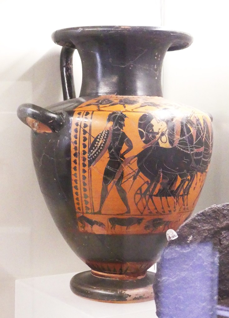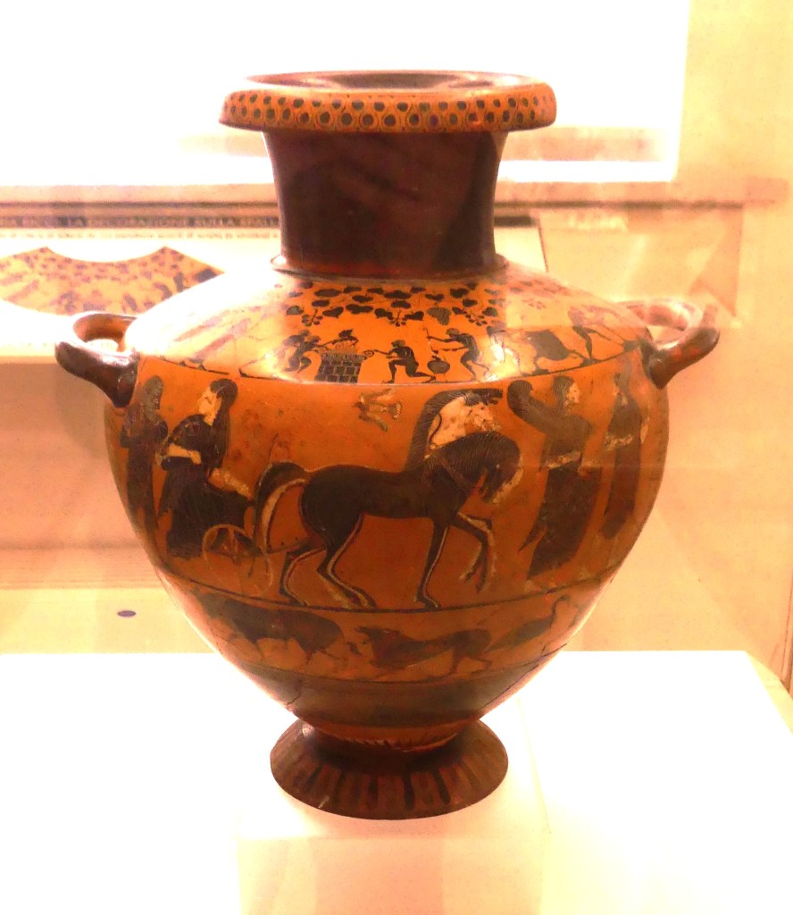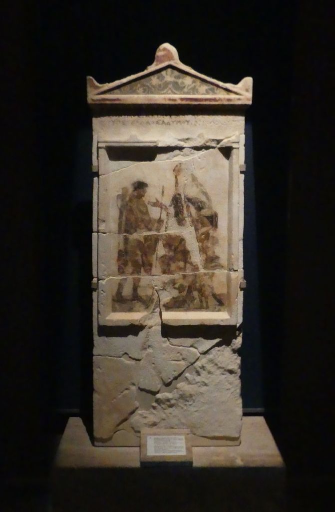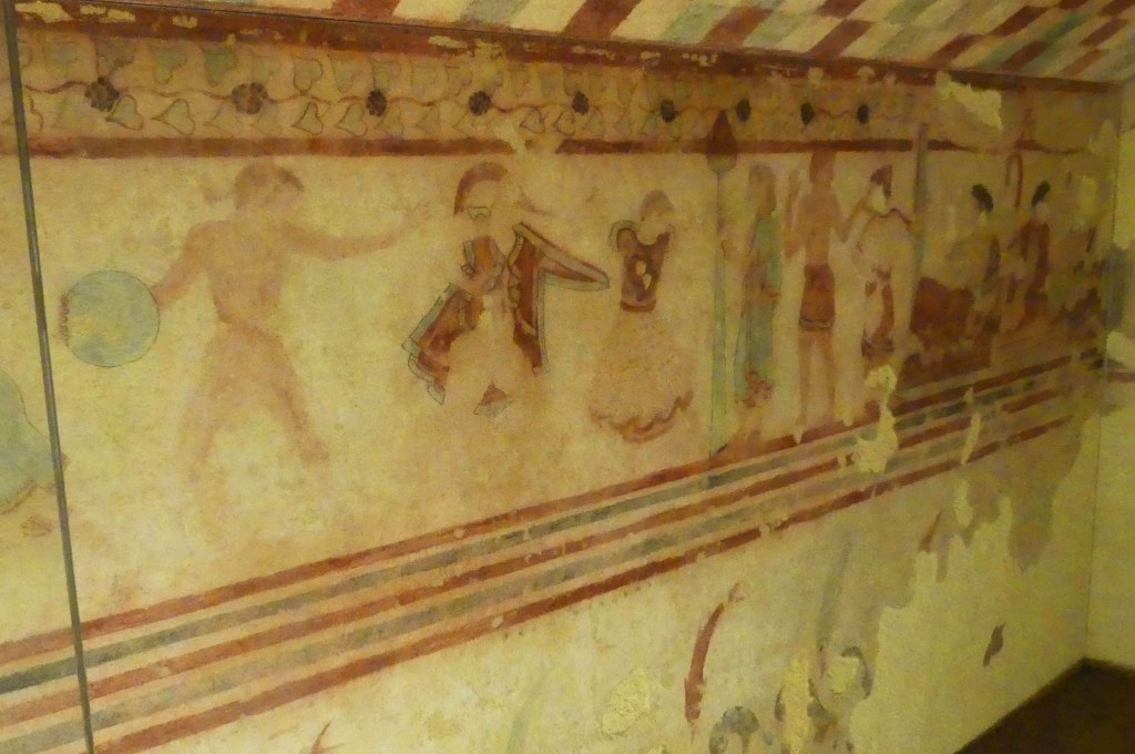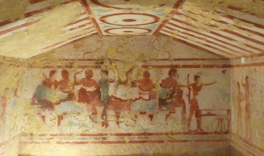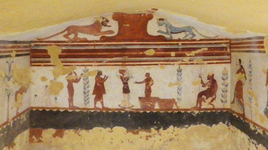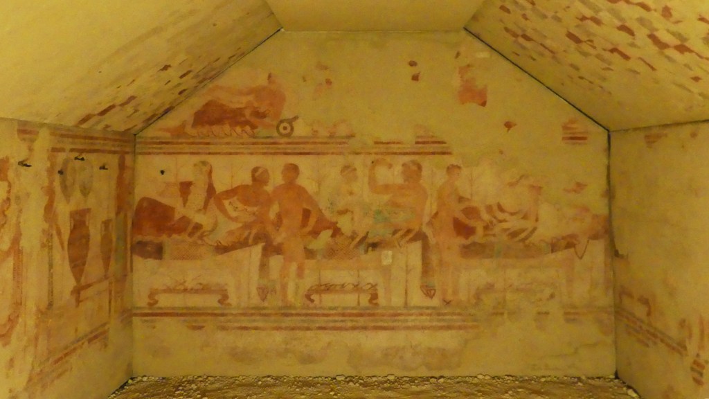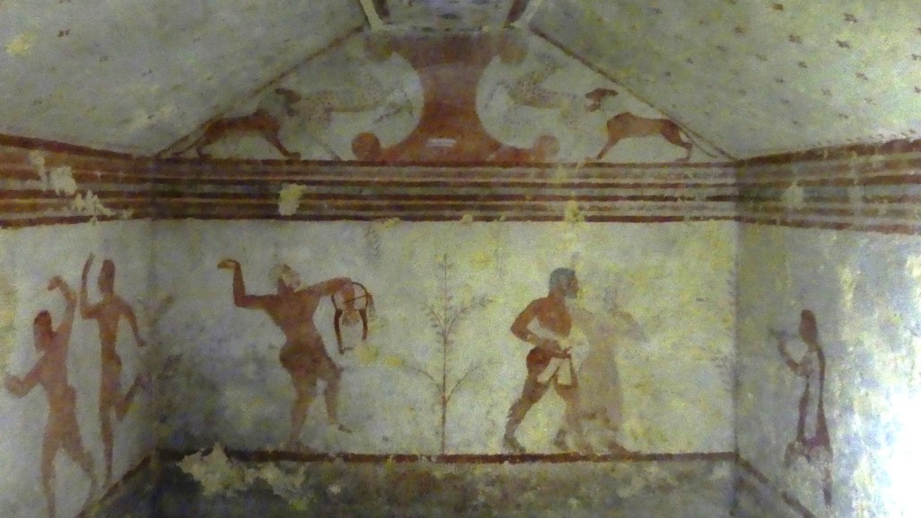 Natomiast z Grobowca I, z którego pozostały tylko kolumny fasady, pochodzi cykl fresków przypisywanych Nikomachosowi z Teb, poświęcony Persefonie, w którym najlepiej zachowana jest scena porwania Persefony przez Hadesa, uwożącego ją dwukołowym rydwanem. Postać sługi z pochodnią, biegnącego przed rydwanem, sugeruje prędkość pojazdu, a nimfa, która towarzyszyła Persefonie, kuli się przy drodze i osłania wznosząc ręką, z rozpostartą dłonią, w geście przerażenia. Z dynamiką tej sceny kontrastuje cichy smutek Demeter, zrozpaczonej porwaniem córki, przedstawiony na sąsiednim fresku. Freski te należą do najcenniejszych spośród bardzo nielicznych zachowanych dzieł malarskich z okresu klasycznego.