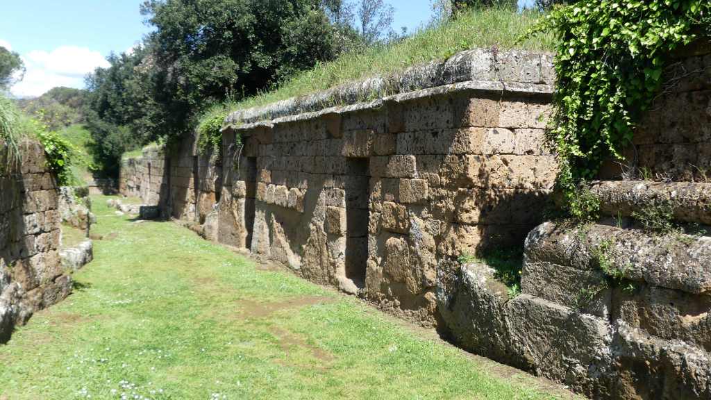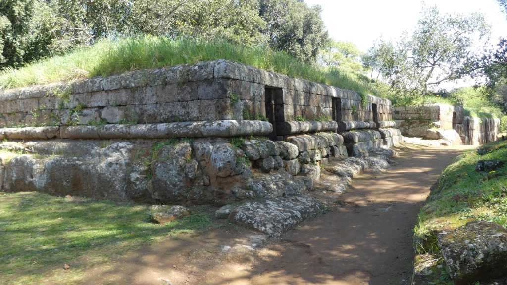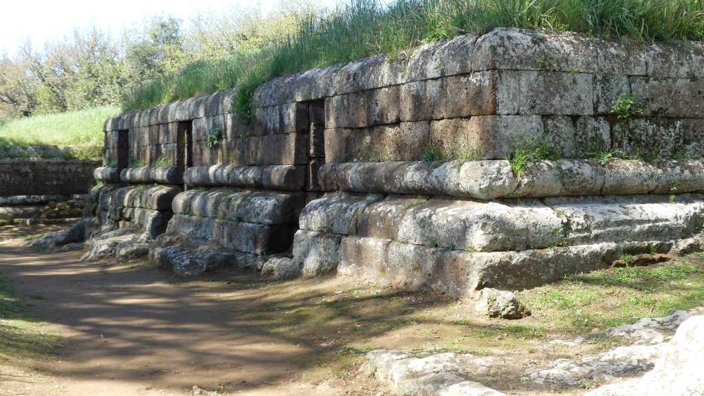 Wszystkie grobowce wzniesione zostały z miejscowego wapienia. Oba niezrabowane grobowce posiadają reprezentacyjne fasady z potężnymi ozdobnymi drzwiami, obrzeżonymi kolumnami (w Grobowcu II), lub niszami (w Grobowcu III), powyżej których biegnie fryz z tryglifami z ciemnego kamienia. Ponad fryzem w Grobowcu II, na całej szerokości fasady, liczącej 5,6 m, umieszczony jest panoramiczny fresk, niestety bardzo wypłowiały, przedstawiający dynamiczną scenę myśliwską, którego autorstwo przypisywane jest Filoksenosowi z Eretrii, autorowi słynnego obrazu przedstawiającego Aleksandra Wielkiego i Dariusza III, w bitwie pod Issos, znanego z mozaiki, z Domu Fauna w Pompejach.
