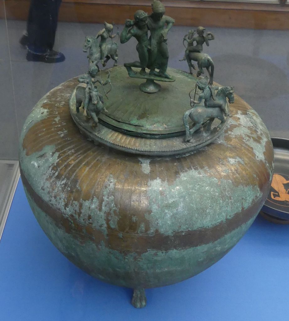 Według antycznej tradycji, macedońska dynastia królewska, Temenidów, pochodziła z Argos, a jej protoplasta, Perdikkas I, miał założyć swoją stolicę w Aigai, w połowie VII w. przed Chr. Około roku 400 przed Chr. macedońska stolica przeniesiona została do Pelli, jednak wszyscy królowie z dynastii Temenidów, za wyjątkiem Aleksandra III Wielkiego, zostali pochowani w Aigai. W szczególności tu miał się znajdować grób Filipa II, ojca Aleksandra Wielkiego, twórcy potęgi Królestwa Macedonii, który został zamordowany w Aigai, w roku 336, podczas ślubu swojej córki, Kasandry, przez jednego z członków gwardii przybocznej. Aleksander, który objął tron po ojcu, urządził mu wspaniały pogrzeb.