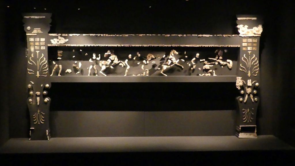 W przedsionku leżały również kości drugiej młodej kobiety, owinięte w cenną purpurowo-złotą tkaninę, a także ornamenty z kości słoniowej, zdobiące niegdyś paradną drewnianą sofę, na której spoczywało ciało zmarłego króla, przed kremacją. Spopielona sofa została zrekonstruowana.