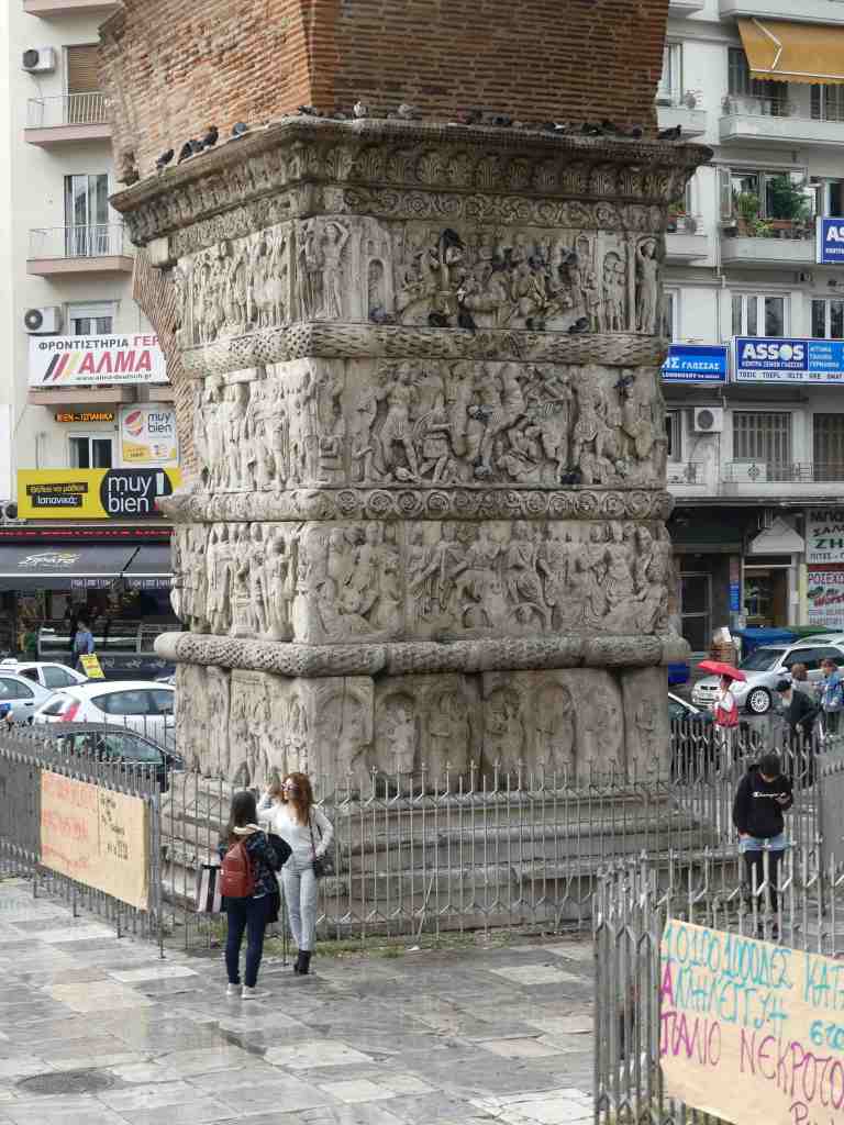 Najstarsze z tych zabytków powstały w latach 293 – 311, pod auspicjami Galeriusza, który rezydował w tym czasie w Tesalonikach. Do wzniesionego wówczas kompleksu budowlanego należał pałac cesarski, bazylika, łaźnia, łuk triumfalny, rotunda i parę innych budynków publicznych; wszystkie połączone pomiędzy sobą kolumnadami. Spośród nich zachował się tylko dwa – łuk triumfalny oraz rotunda – i te zostały włączone do listy UNESCO. Z pozostałych przetrwały jedynie fundamenty, odsłaniane stopniowo podczas prowadzonych nadal badań archeologicznych, które pomagają w odtworzeniu planu całego kompleksu.