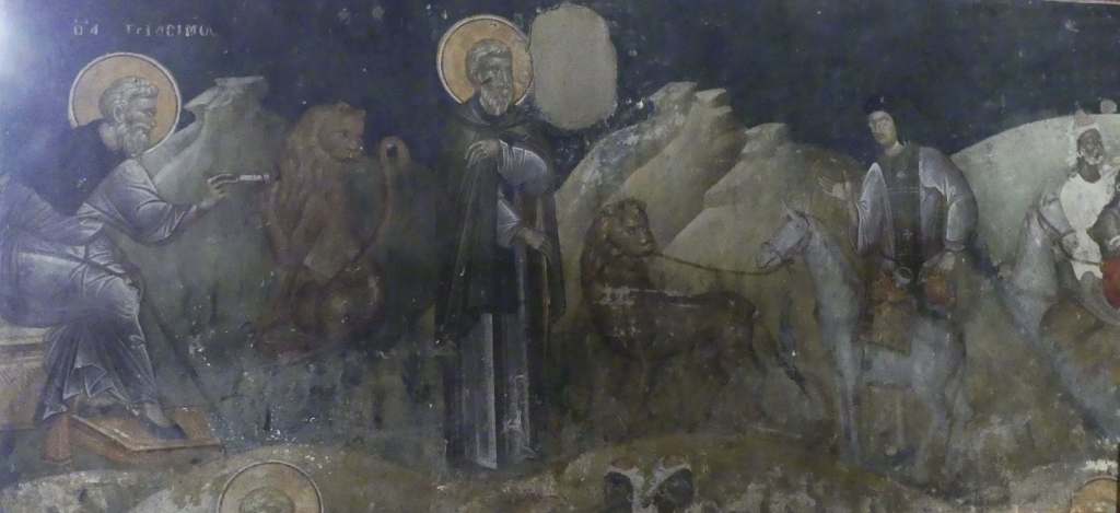 Św. Łukasz ze Steiris, fresk na filarze bazyliki Św. Dmetriusza, XII w.
