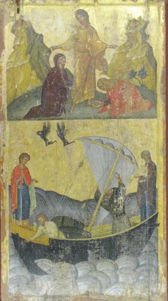 Angelos Akotantos, Chrystus ukazujący się niewiastom i Cud Św. Fanouriosa, z ołtarza Św. Fanouriosa, Muzeum Sztuki Chrześcijańskiej w Heraklionie