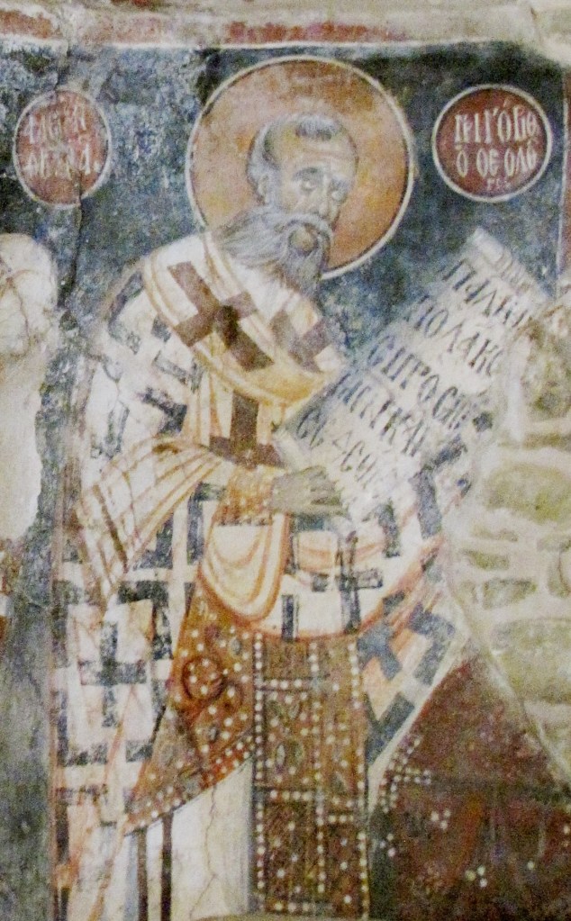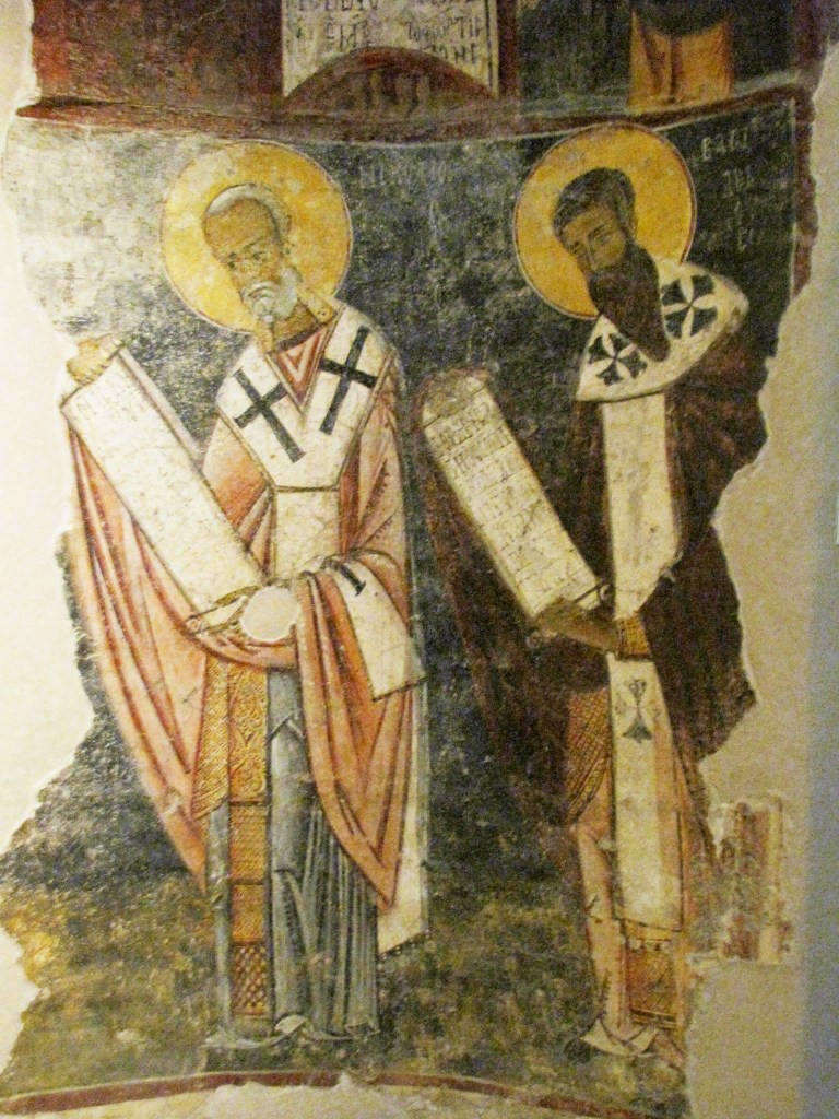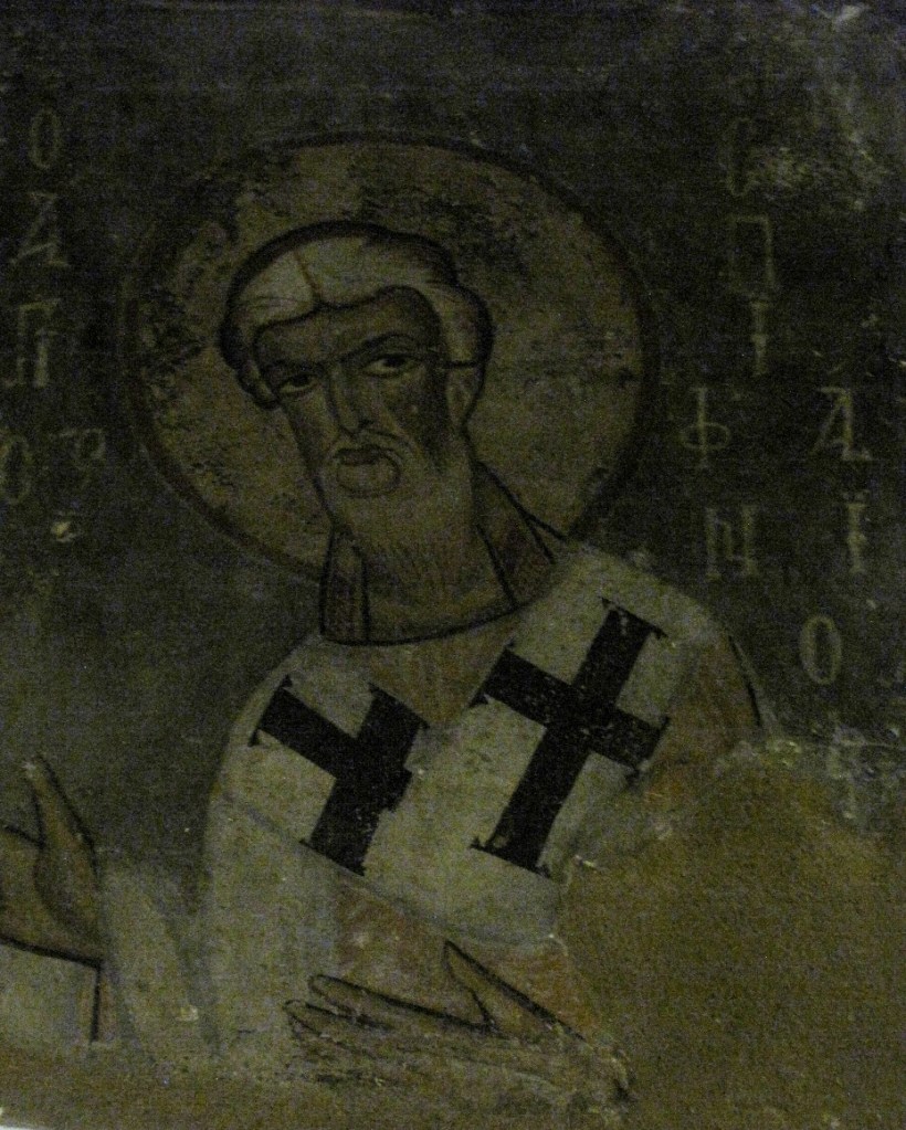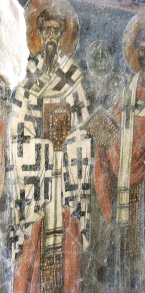 Biskupi uczestniczący w nabożeństwie, fragment fresku z kościoła Panagia w Patsos, wczesny XIV w., Muzeum Archeologiczne w Retymno