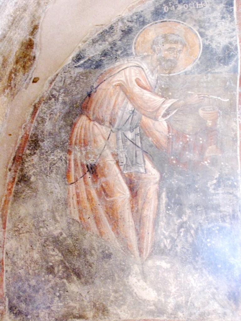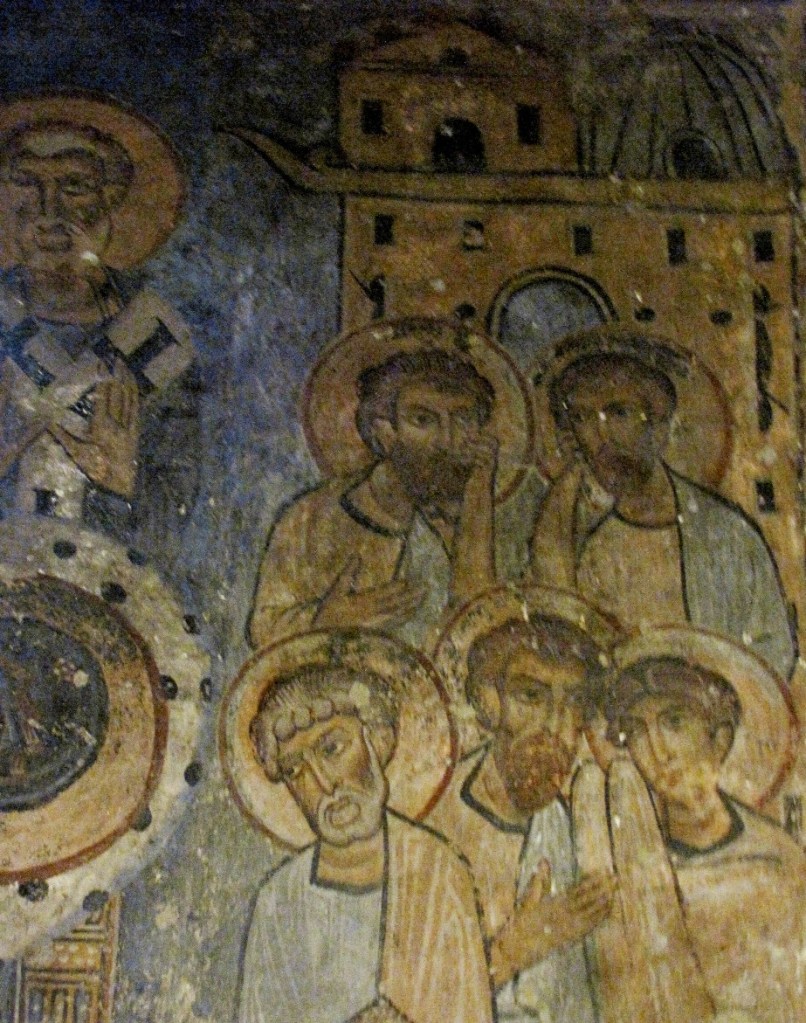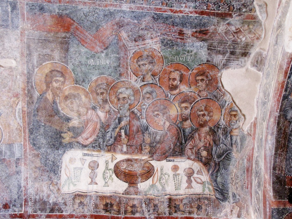 Komunia Apostołów, fragment fresku z kościoła Panagia w Patsos, wczesny XIV w., Muzeum Archeologiczne w Retymno