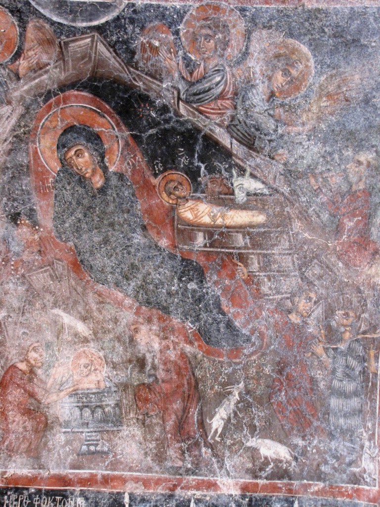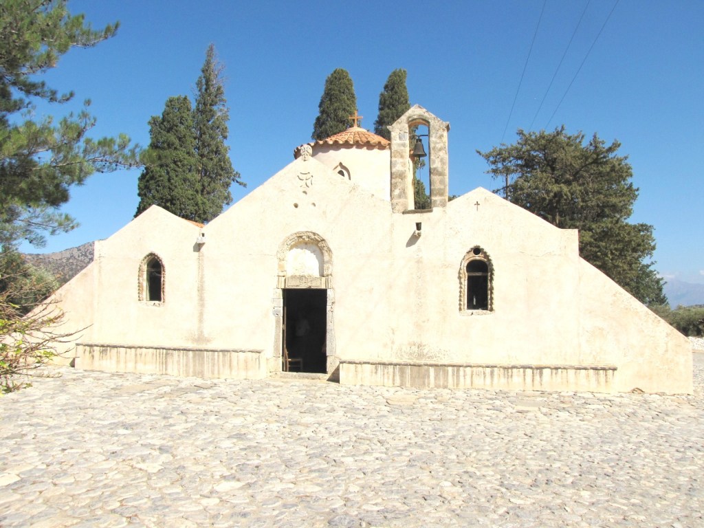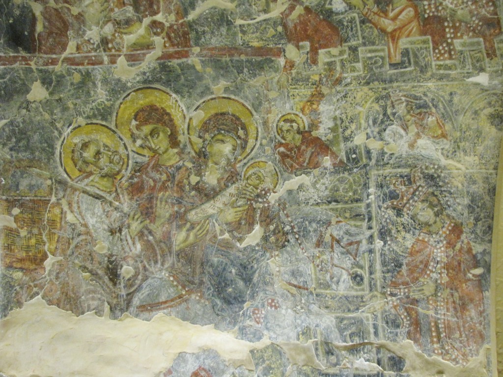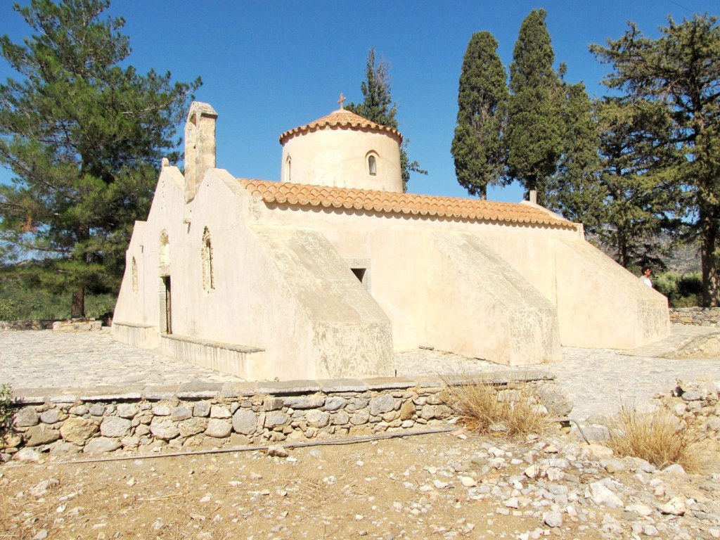 Najcenniejszym zabytkiem bizantyńskim, jaki obejrzeliśmy na Krecia był  maleńki kościółek Panaghia Kyra, usytuowany w starym sadzie oliwnym, w pobliżu wioski Kritsa, na wschodnim krańcu wyspy. Kościółek ten wzniesiony został XIII i XIV w., a w jego wnętrzu zachował się – co prawda w nie najlepszym stanie – niemal kompletny wystrój malarski. Jego powstanie przypadło na ostatni już okres rozkwitu sztuki bizantyńskiej, zwany „renesansem Paleologów”. Malarstwo bizantyńskie tego okresu charakteryzuje się pewnym  odejściem od monumentalności oraz skłonnością do liryzmu i anegdotyczności. Takimi cechami oznaczają się również freski w Panaghia Kyra, przedstawiające  pełne wyrazu podobizny Chrystusa i świętych, oraz dosyć naiwne sceny narracyjne – ewangeliczne, a także ilustrujące dzieciństwo Panny Maryi.