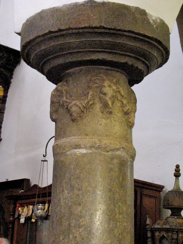 Centralna kopuła kościoła wsparta jest na czterech kolumnach pochodzenia antycznego, również szereg innych elementów architektonicznych pochodzi z budowli starożytnych, lub z wcześniejszej świątyni chrześcijańskiej, która wznosiła się na tym samym miejscu. Zachował się oryginalny marmurowy templon z XII w., ozdobiony wyżłobionymi w nim deseniami geometrycznymi oraz motywami roślinnymi i zoomorficznymi w stylu arabskim, intarsjowanymi czerwono-brunatnym woskiem połączonym z mastikiem (rodzajem żywicy). Drewniana rzeźbiona nadbudowa ikonostasu pochodzi z XVIII w., a same carskie wrota z wieku XVII.