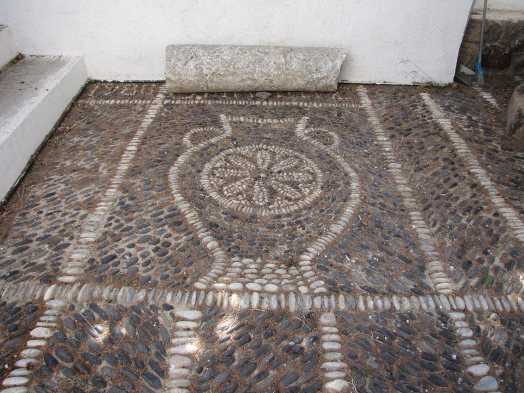 Mozaika z otoczaków przed kościółkiem w Mesa Goni