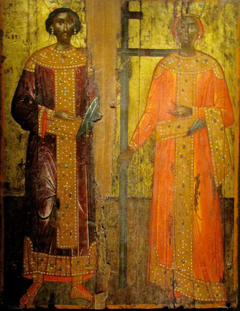 Konstantyn Wielki i Św. Helena, prawdopodobnie z początku XVI w., wielokrotne przemalowywany, Muzeum Historyczne w Heraklionie