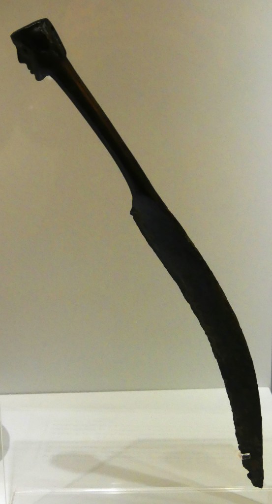 Nóż z brązu, z zakończeniem rękojeści w formie głowy męskiej, XII – VIII w. Przed Chr., Muzeum Archeologiczne w Heraklionie