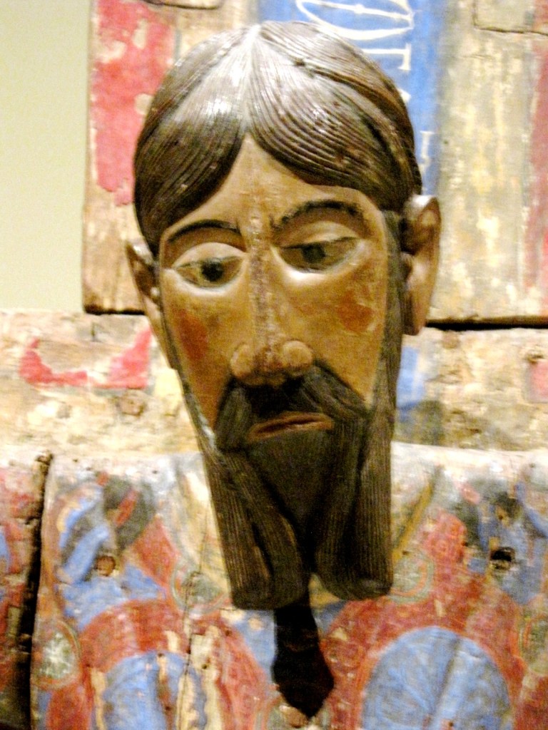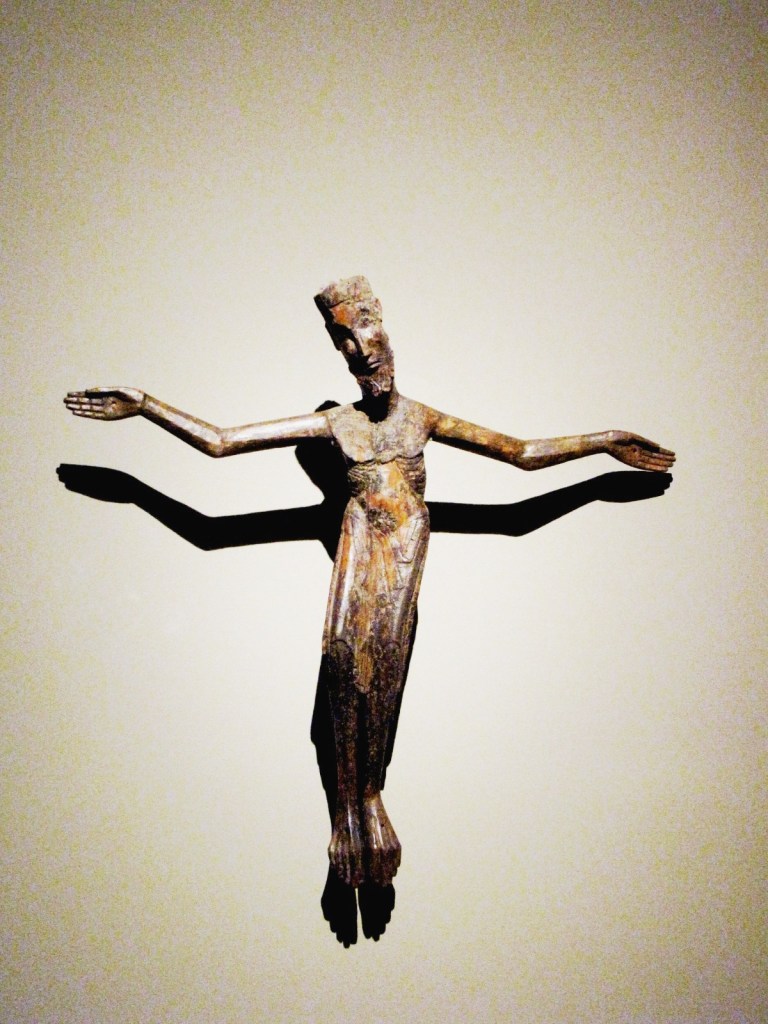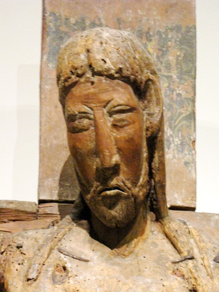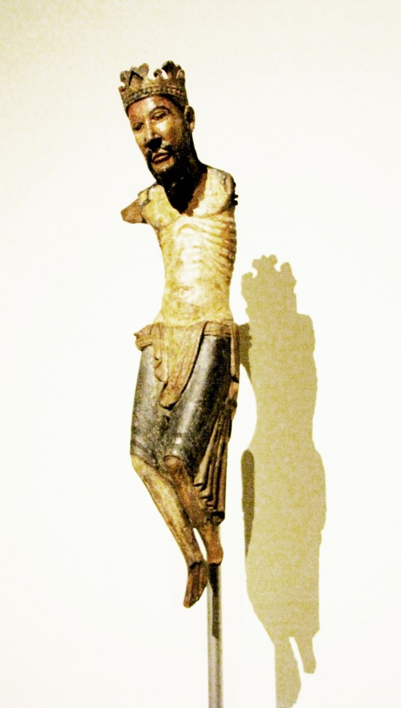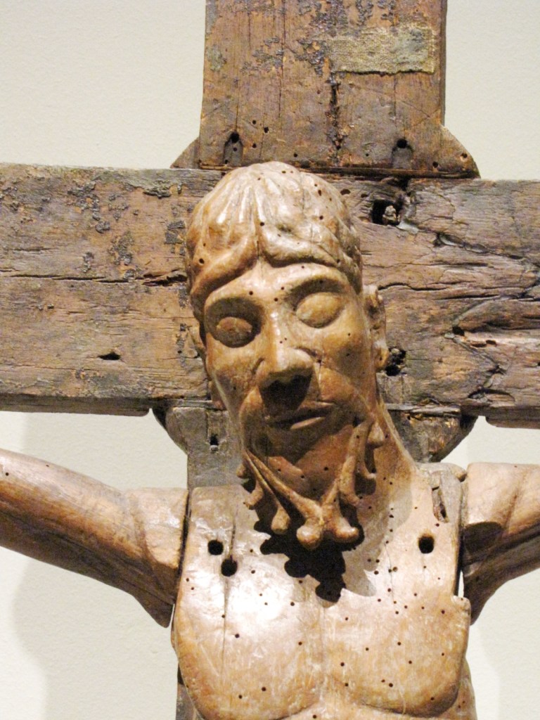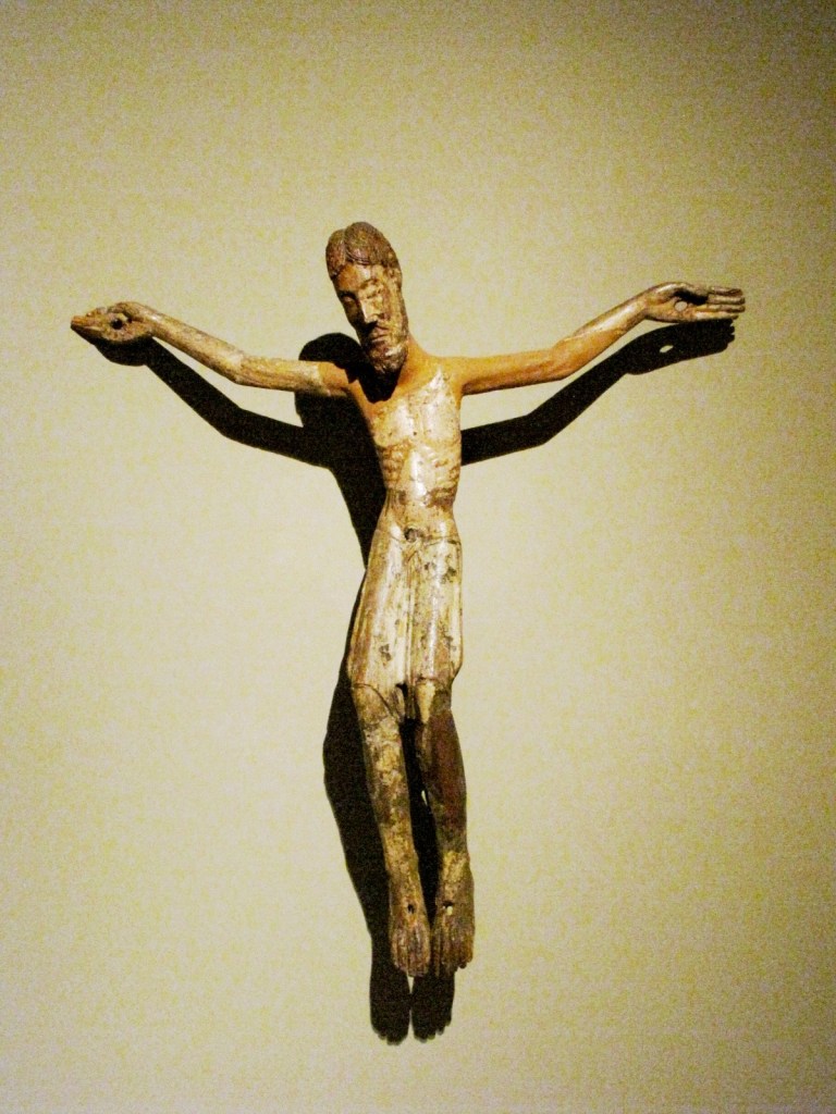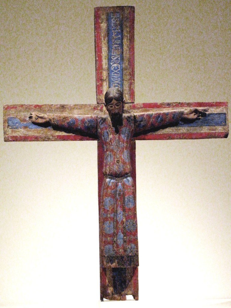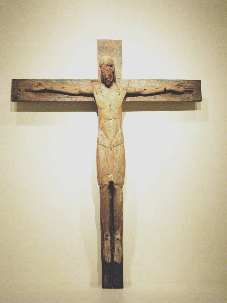 Najstarszy duży krucyfiks typu pasyjnego, ze zbiorów MNAC, datowany jest dokładnie na rok 1147, a to dzięki temu, że w otworze wyżłobionym w tylnej stronie krzyża zachował się pergamin podający datę poświęcenia krucyfiksu. Do tego typu ikonograficznego zalicza się szereg innych krzyży z muzeum, a wśród nich duży drewniany krucyfiks z drugiej połowy XIII w., pochodzący z kościoła San Vincenç z Cabdelli, z wyrazistym obliczem Chrystusa, naznaczonym cierpieniem.