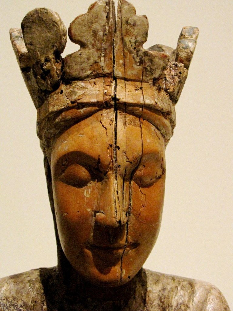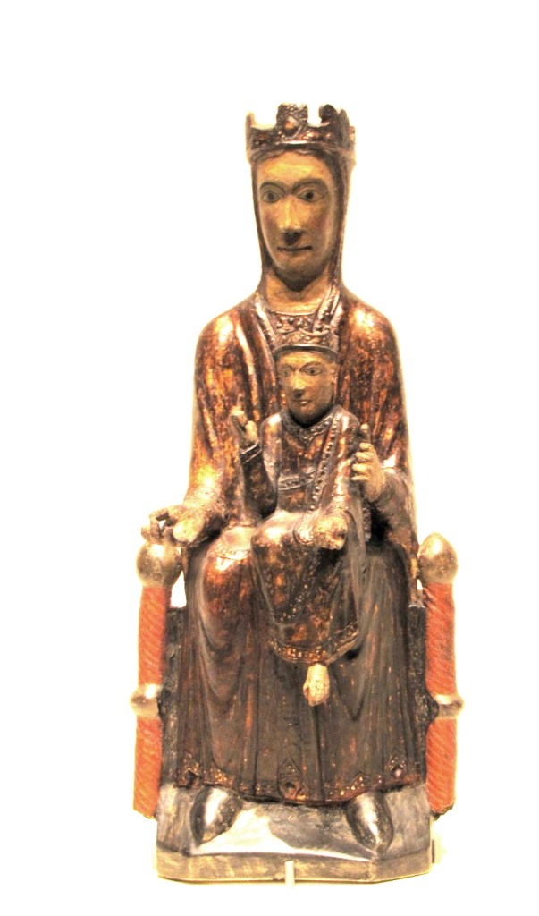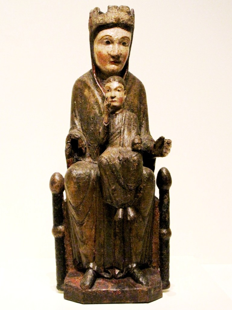 Obok krucyfiksów najpopularniejszym typem katalońskich figur dewocyjnych z epoki romańskiej były rzeźby Matki Boskiej, siedzącej na tronie, z Dzieciątkiem na kolanach, nazywane „Tronem mądrości” (Sedes Sapientiae). Należy do nich piękna polichromowana rzeźba drewniana, z początku drugiej połowy XII w., pochodząca z kościoła Santa Coloma w Ger. Rzeźba wyróżnia się wysokim poziomem artystycznym. Obie Postacie ustawione są frontalnie; Madonna ma na sobie wzorzystą szatę przypominającą ornat; Dzieciątko prawą rączkę wznosi w górę, gestem błogosławieństwa, a lewą opiera na książce.