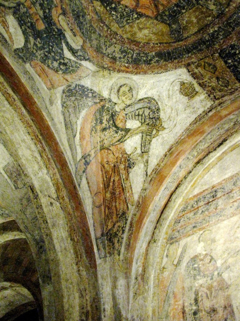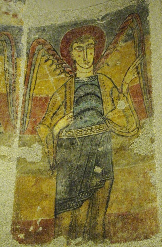Rysunek fresków, z konturami obwiedzionymi czarnymi liniami, jest dość prymitywny, choć wykonany z dużym rozmachem, a gama kolorystyczna ograniczona: obok czarnego, dominują czerwienie i różne odcienie ochry i szarości. Freski te, wykazujące stylistyczne podobieństwo do jedenastowiecznych iluminacji katalońskich i francuskich, są zaliczane jeszcze do malarstwa przedromańskiego.