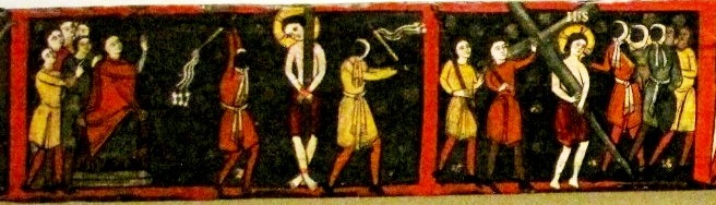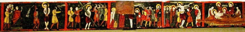 Wyraźne wpływy bizantyńskie występują również w romańskim malarstwie tablicowym z Katalonii. Nietypowym dziełem jest tu tzw. „Belka Pasyjna”. Belka ta, długa na blisko 2,5 m, a szeroka niewiele ponad 20 cm, służyła zapewne do umocowania baldachimu, lecz jej pochodzenie nie jest znane. Są na niej wyobrażone sceny z Męki Chrystusa, poczynając od „Pocałunku Judasza”, aż do „Niewiast przy Grobie”. Jest to kompozycja ikonograficzna unikalna na terenie Hiszpanii. Co ciekawe Chrystus przedstawiony jest bez brody, tak jak na wizerunkach wczesnochrześcijańskich. Poszczególne sceny, na przykład „Opłakiwania” są bliskie tradycji bizantyńskiej, jednocześnie jednak wykazują podobieństwa do miniatur hiszpańskich i angielskich. Na podstawie tych związków stylistycznych Belka datowana jest na lata 1195-1220.