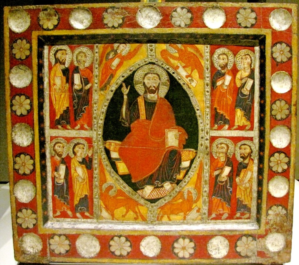 Pochodzący z drugiej połowy XII w. frontal ołtarzowy nieznanego pochodzenia, nazywane umownie, Esquisis, reprezentuje często spotykane rozwiązanie ikonograficzne, w którym środek obrazu zajmuje tetraforma otaczająca mandorlę z postacią Chrystusa błogosławiącego. Wzdłuż mandorli biegnie łaciński napis : HIC DEUS ALFA ET O[MEGA] … Po bokach, w dwóch regestrach rozmieszczono po trzy postacie apostołów, na tle poziomych, jednorodnych pasów kolorystycznych, co przypomina freski z kościoła Santa Maria w Taüll.