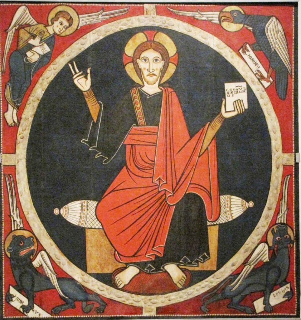 Pod koniec XII w. w katalońskim malarstwie naściennym przejawiają się wpływy francuskie. Na około roku 1200 datowany jest wystrój kościoła San Vicenç w Cardonie. W muzeum figurują freski pochodzące z atrium prowadzącego do tego kościoła. Na środku sklepienia atrium widnieje Maiestas Domini, namalowany czystymi pastelowymi barwami, otoczony tetramorfą – symbolami czterech Ewangelistów.