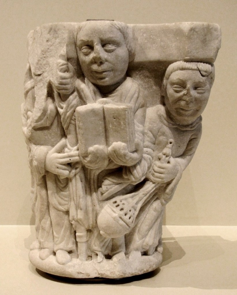 Lokalne warsztaty kamieniarskie w Ripoll i Vic wykonywały rzeźby architektoniczne, zapewne poczynając już od XII w. Z klasztoru Santa Maria w Ripoll pochodzi oryginalny kliniec przedstawiający głowę maszkarona pożerającego baranka. Podobnie z Ripoll pochodzą kamienne, rzeźbione podstawy baldachimu, datowane na połowę dwunastego wieku.