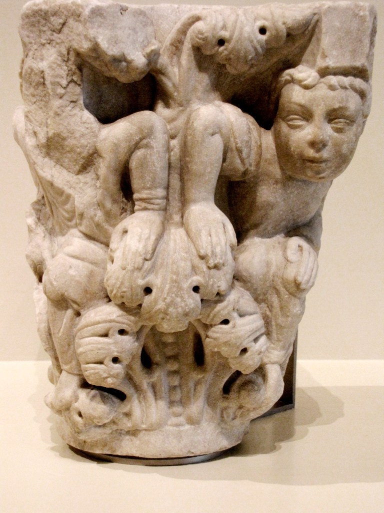 MNAC nie posiada w swoich zbiorach dzieł Mistrza z Cabestany. Miałem jednak szczęście, bo podczas mojej wizyty, w muzeum znajdowały się cztery główki z marmuru, pochodzące ze zniszczonego portalu kościoła Sant Pere de Rodes, wypożyczone z innych kolekcji, na wystawę czasową.