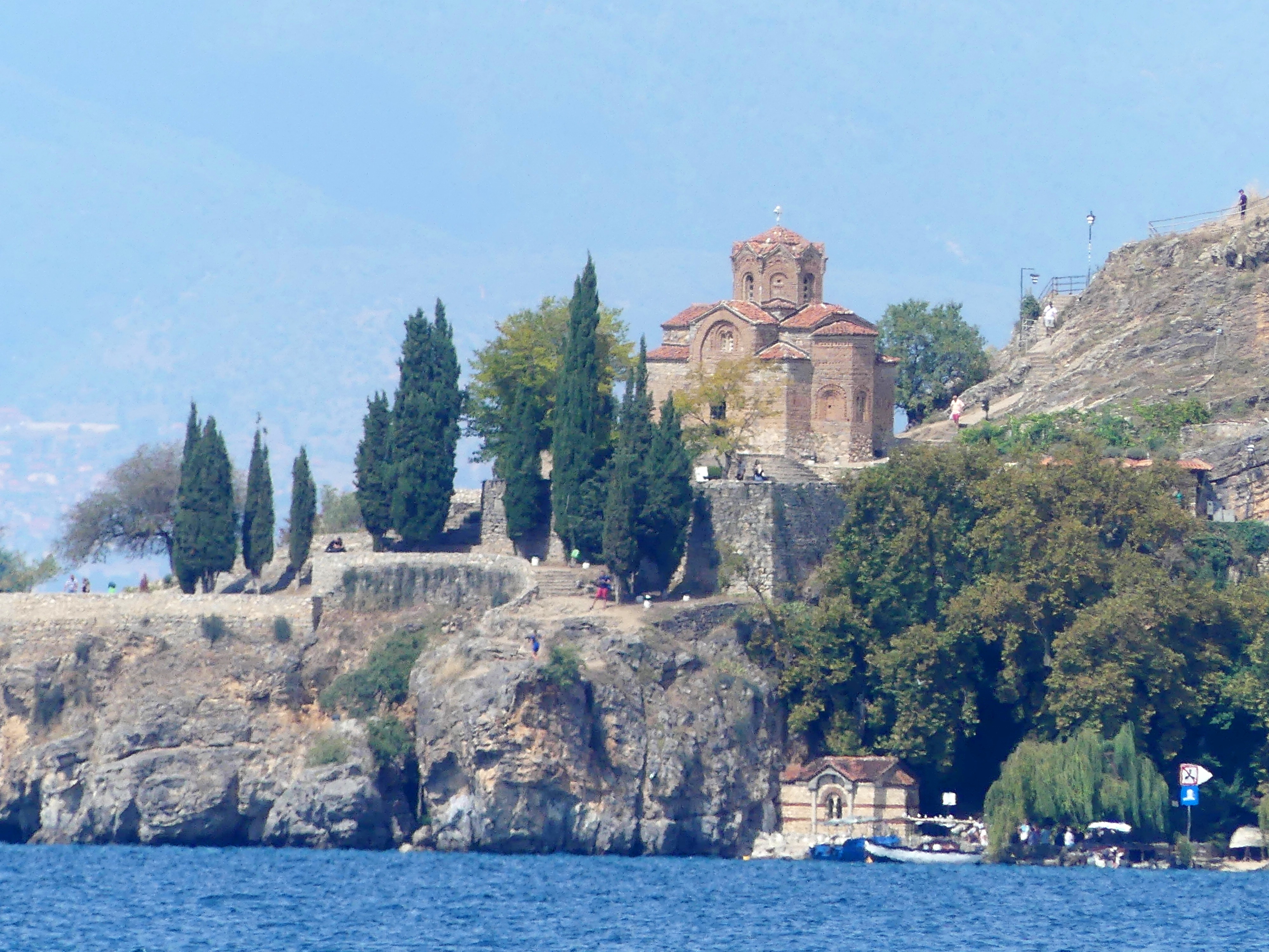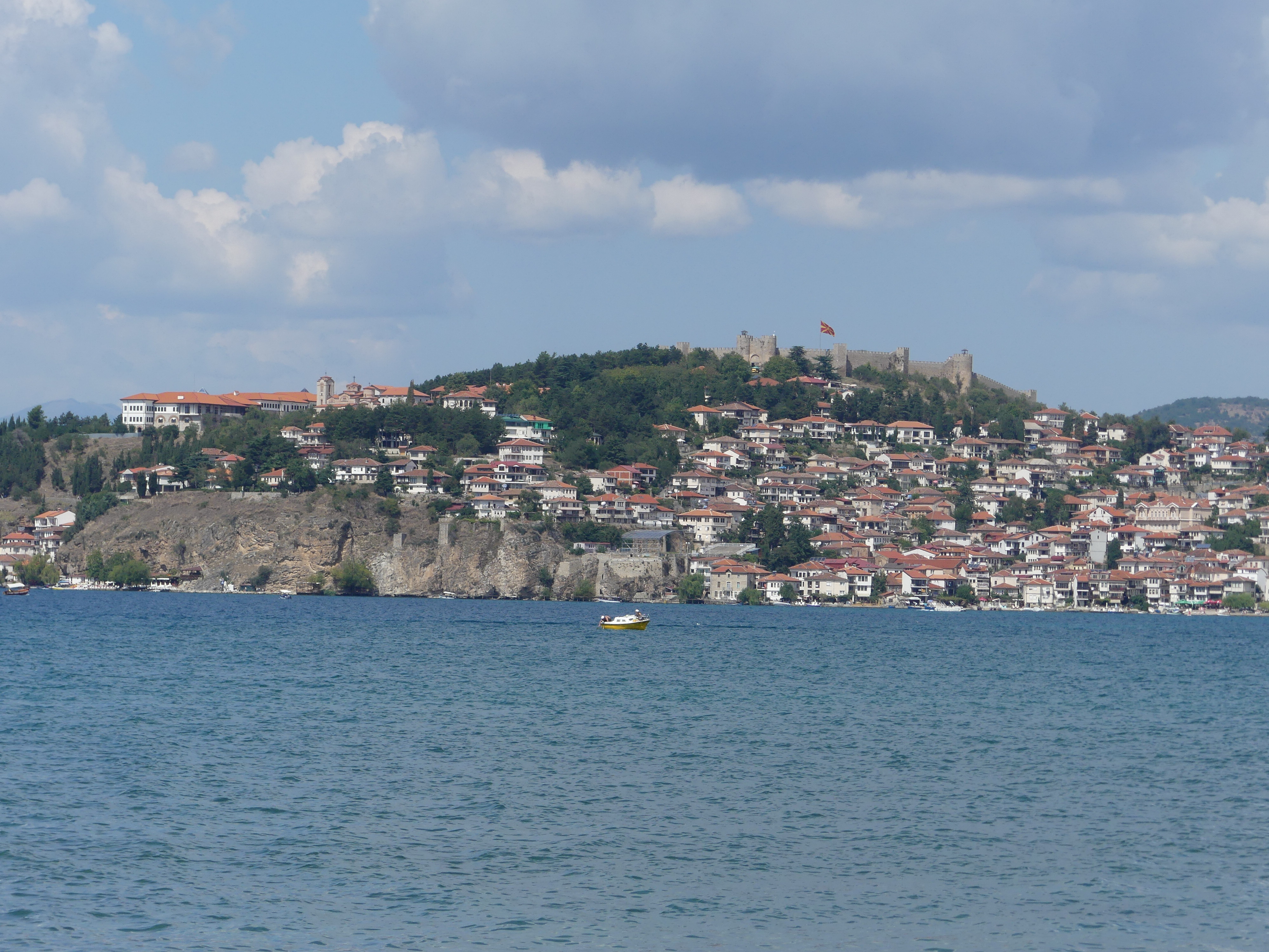Do Ochrydy ciągnęły mnie już od dawna przeczytane informacje o zachowanych tam freskach bizantyńskich  z XI-XIV wieku, a ponieważ zachwalane było również położenie miasta nad malowniczym jeziorem, więc miejsce odpowiadało także Małgosi. Wyjątkowo, załatwiliśmy tam pobyt za pośrednictwem biura turystycznego, gdyż z Warszawy do Ochrydy nie latają samoloty rejsowe, a jedynie czartery, wynajmowane przez takie biura. Wybór okazał się bardzo trafny, gdyż nasz hotel był usytuowany kilka kilometrów od Ochrydy, tuż nad brzegiem jeziora,  z wyjątkowo pięknymi widokami.