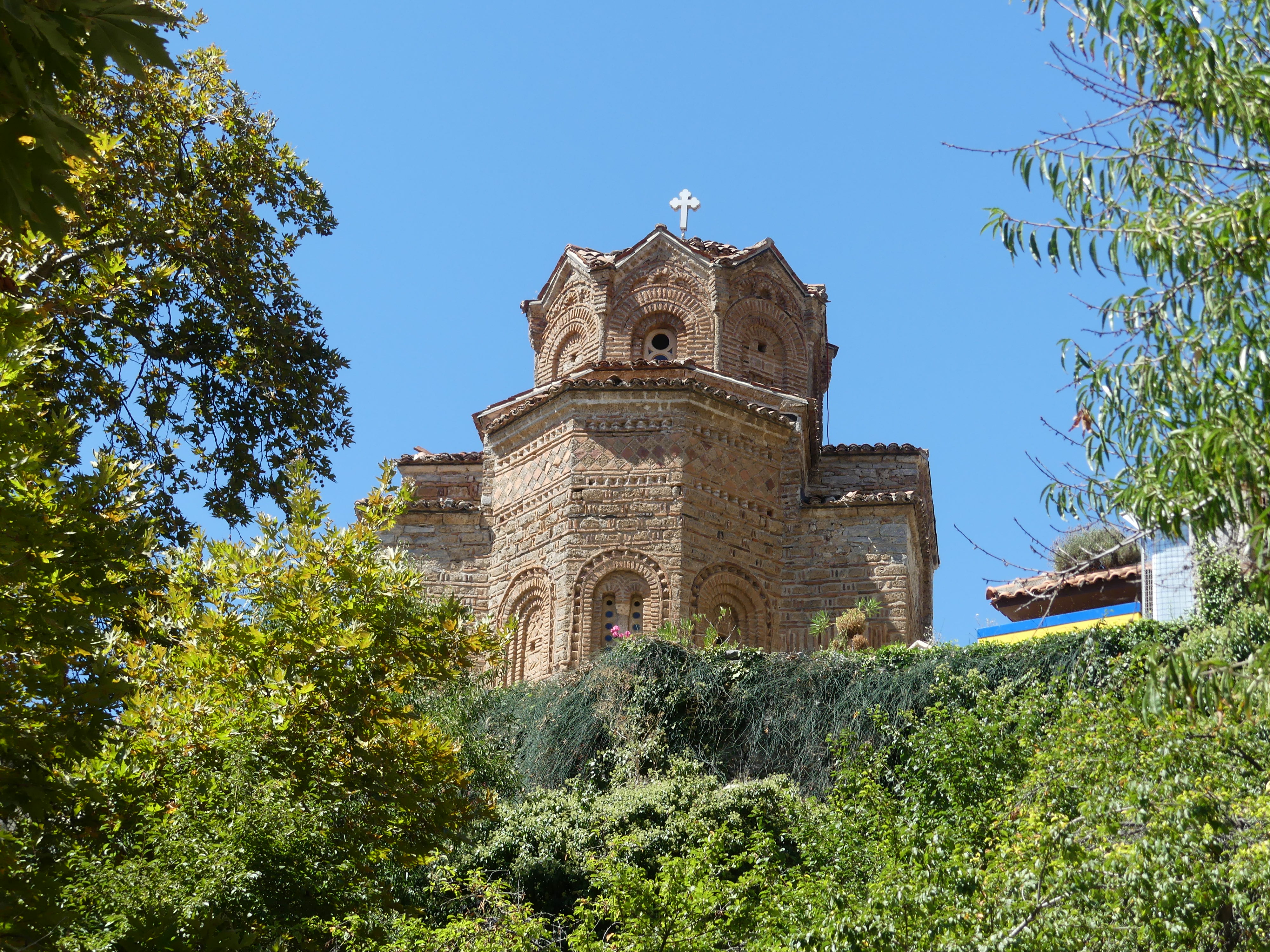 Niewielka cerkiew Św. Jana Teologa, pochodząca z XIII w.  jest najbardziej znaną w Ochrydzie, ze względu na swoje wyjątkowo malownicze położenie na cyplu skalnym, wznoszącym się wysoko, nad samym brzegiem jeziora. Niestety jej wystrój wewnętrzny zachował się w złym stanie.
