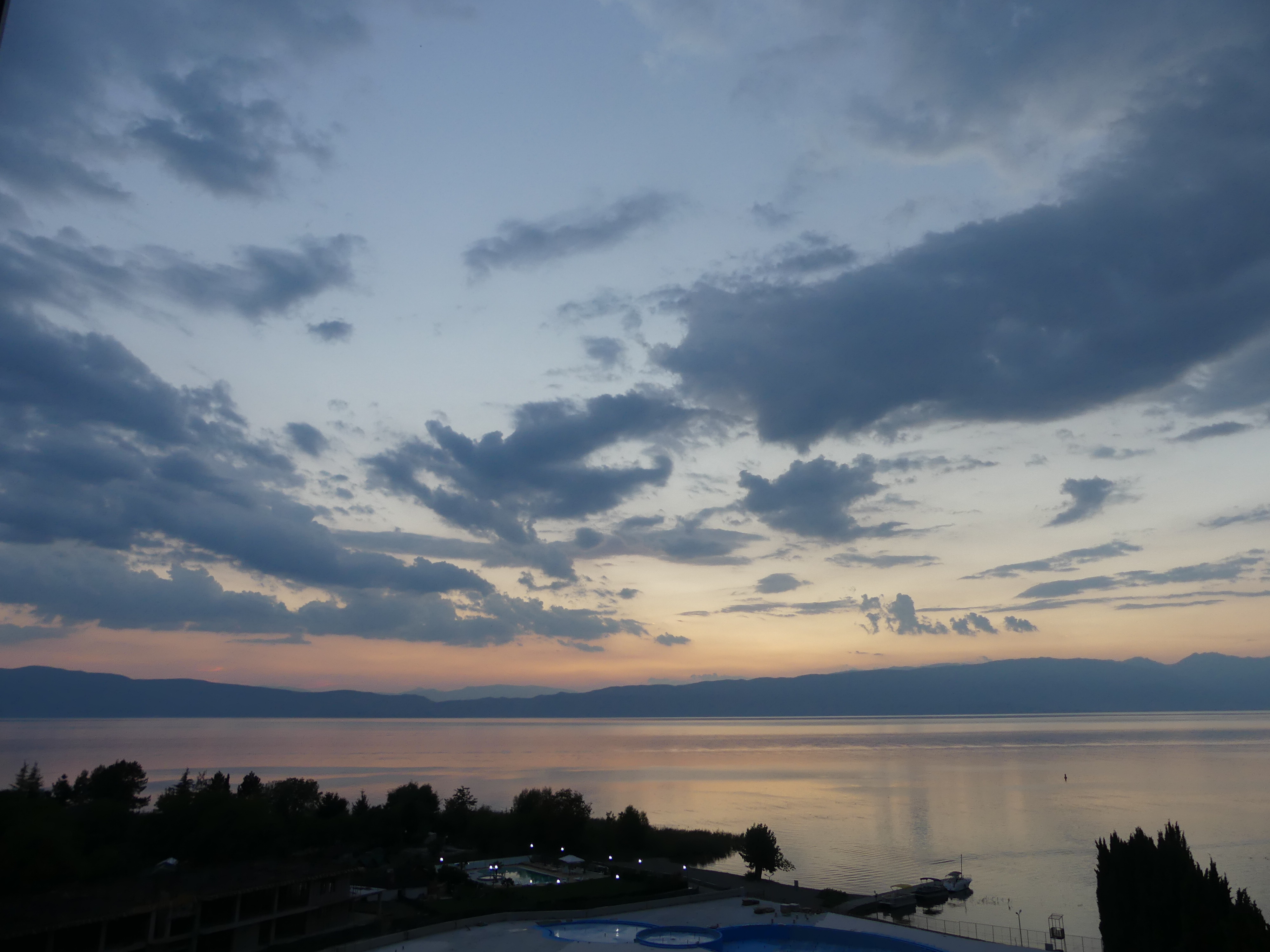 Wczesny zmrok nad Jeziorem Ochrydzkim
