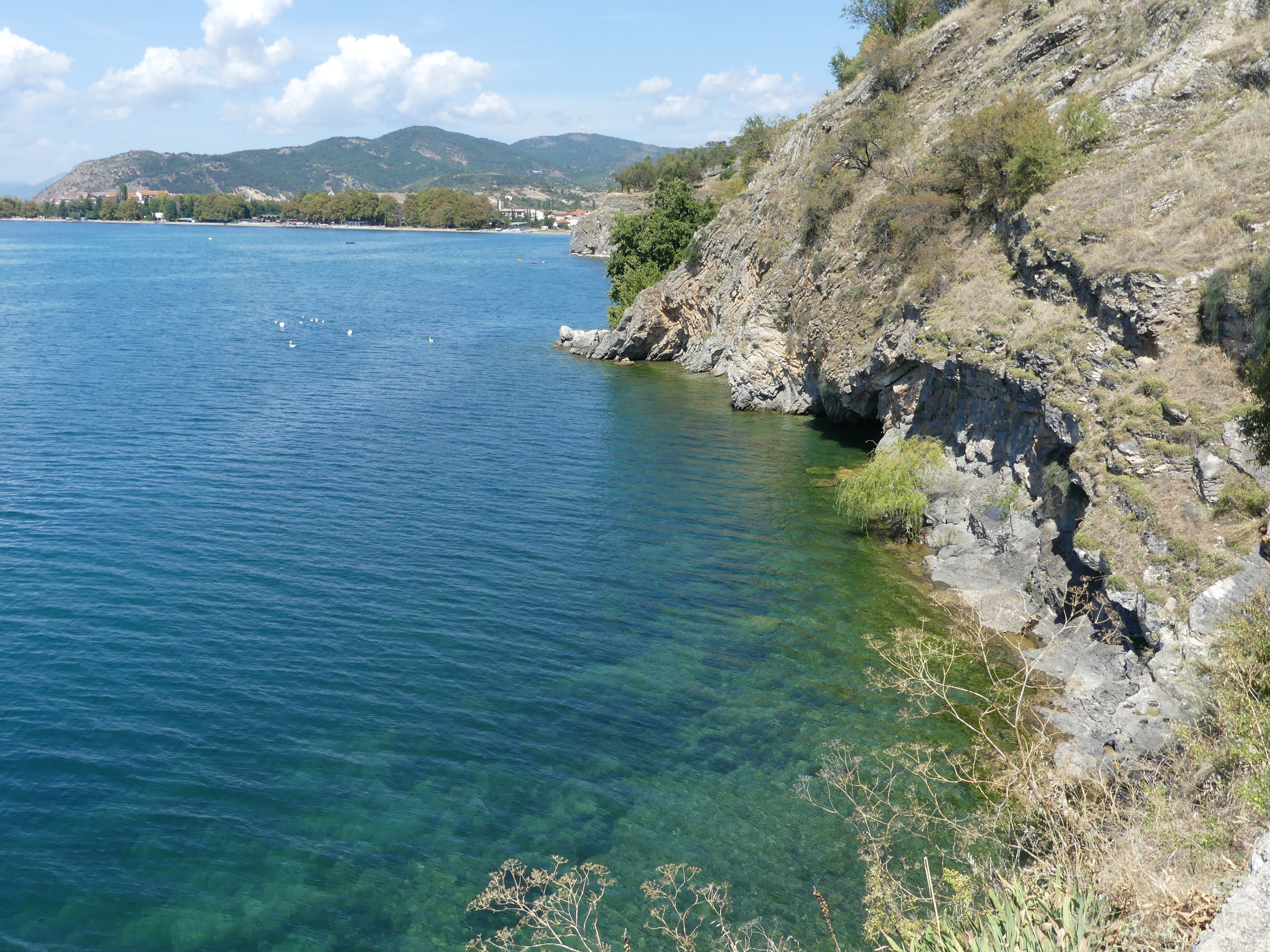 Jezioro Ochrydzkie leży na wysokości 750 m nad poziomem morza i otoczone jest dokoła górami dochodzącymi do 2300 m, które niemal do szczytu pokryte są liściastymi lasami. Jezioro liczy około 30×14 km, a przy średniej głębokości 160 m stanowi czwarty co do wielkości naturalny zbiornik słodkiej wody na świecie, przy czym woda jest w nim wyjątkowo przejrzysta. Po stronie południowo-wschodniej wody Jeziora Ochrydzkie zasilane są podziemnymi kanałami z położonego o 150 m wyżej Jeziora Prespańskiego. Oba jeziora rozdziela łańcuch górski Galiczica, stanowiący park narodowy, a z karkołomnej drogi prowadzącej przez przełęcz roztaczają się wspaniałe widoki.